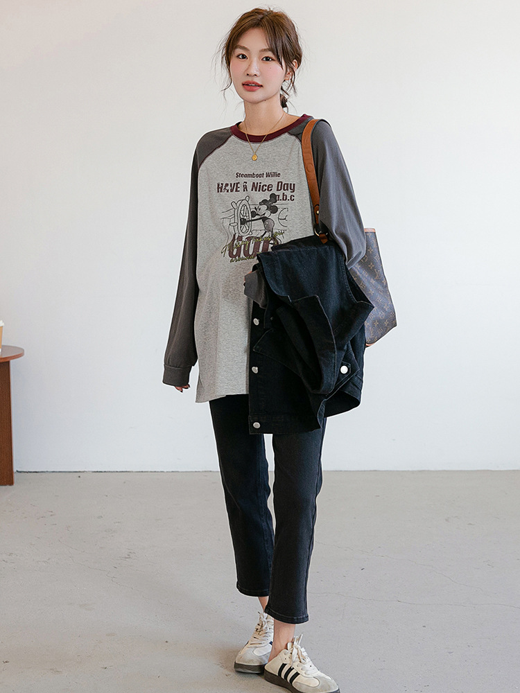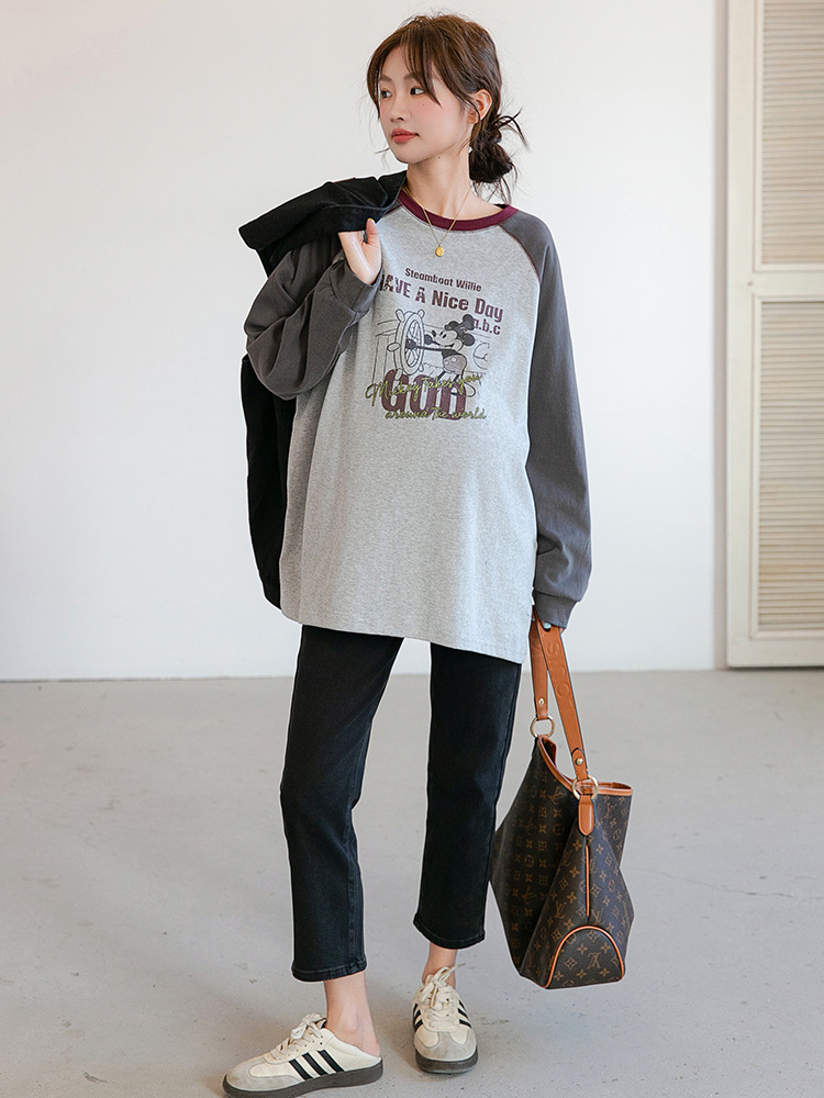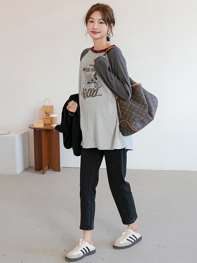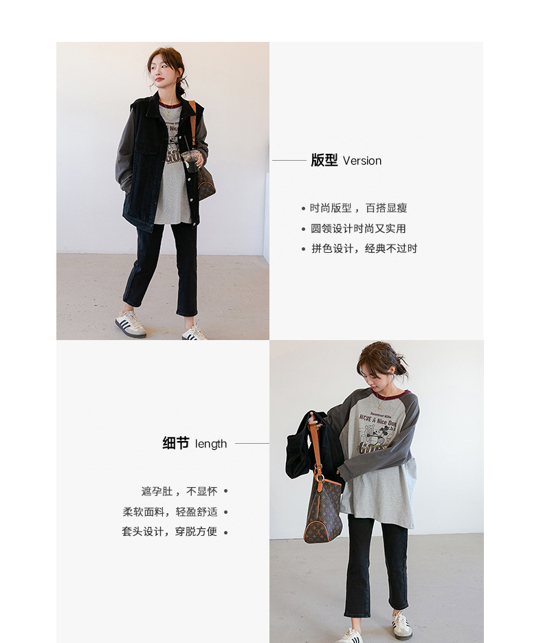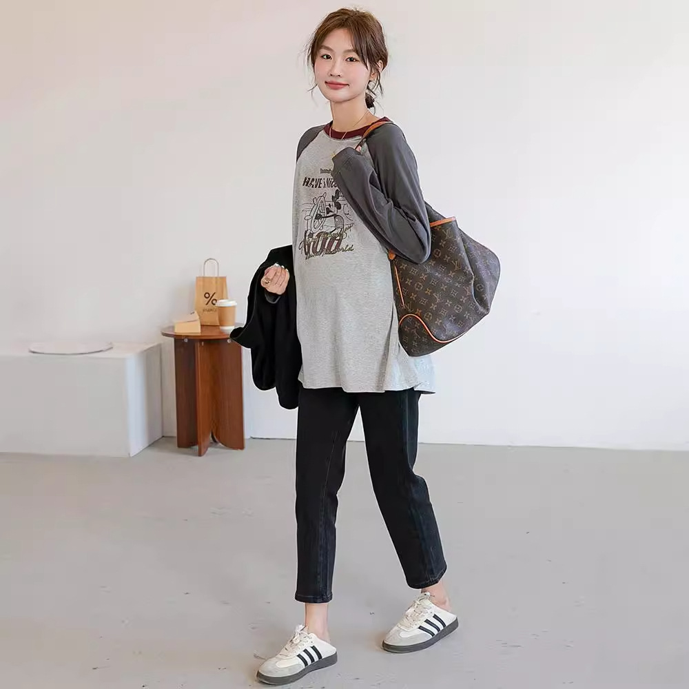 Осенняя и зимняя одежда для беременных корейская версия рукава для беременных свитеров с круглым вырезом футболка свободная повседневная одежда с длинными рукавами большого размера