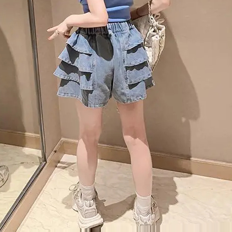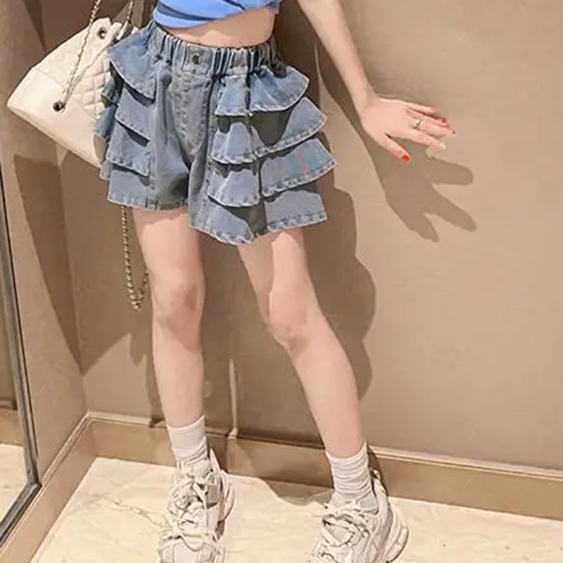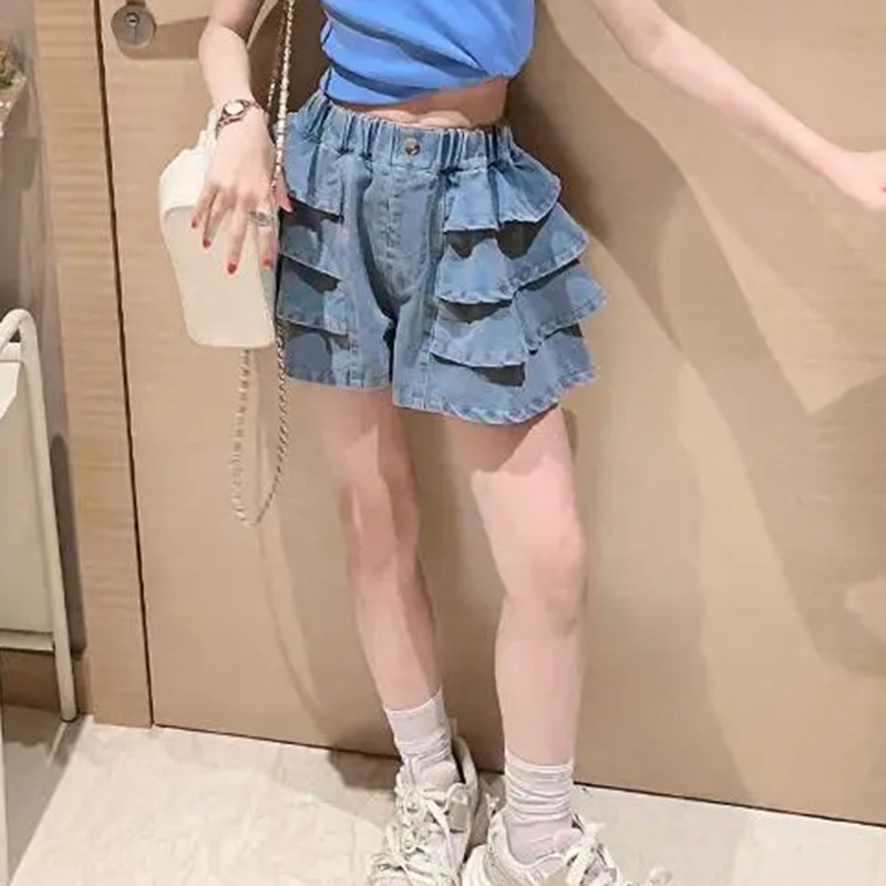Джинсовая юбка для девочек, новый летний стиль, эластичная детская джинсовая юбка, стильная джинсовая короткая юбка для детей среднего и большого размера, модная.