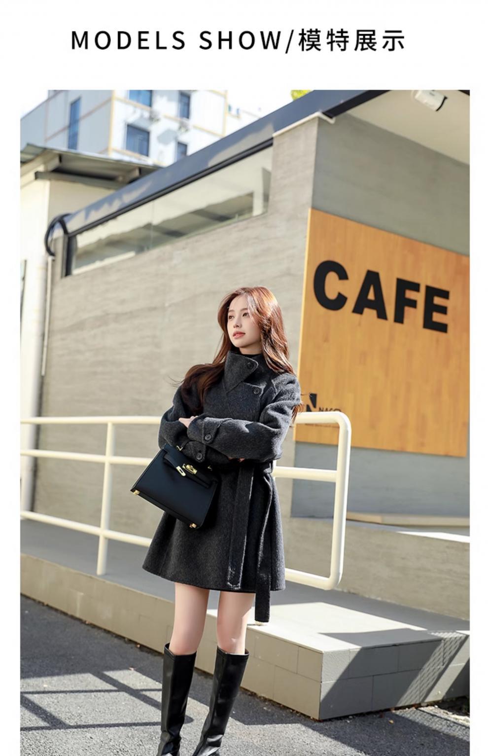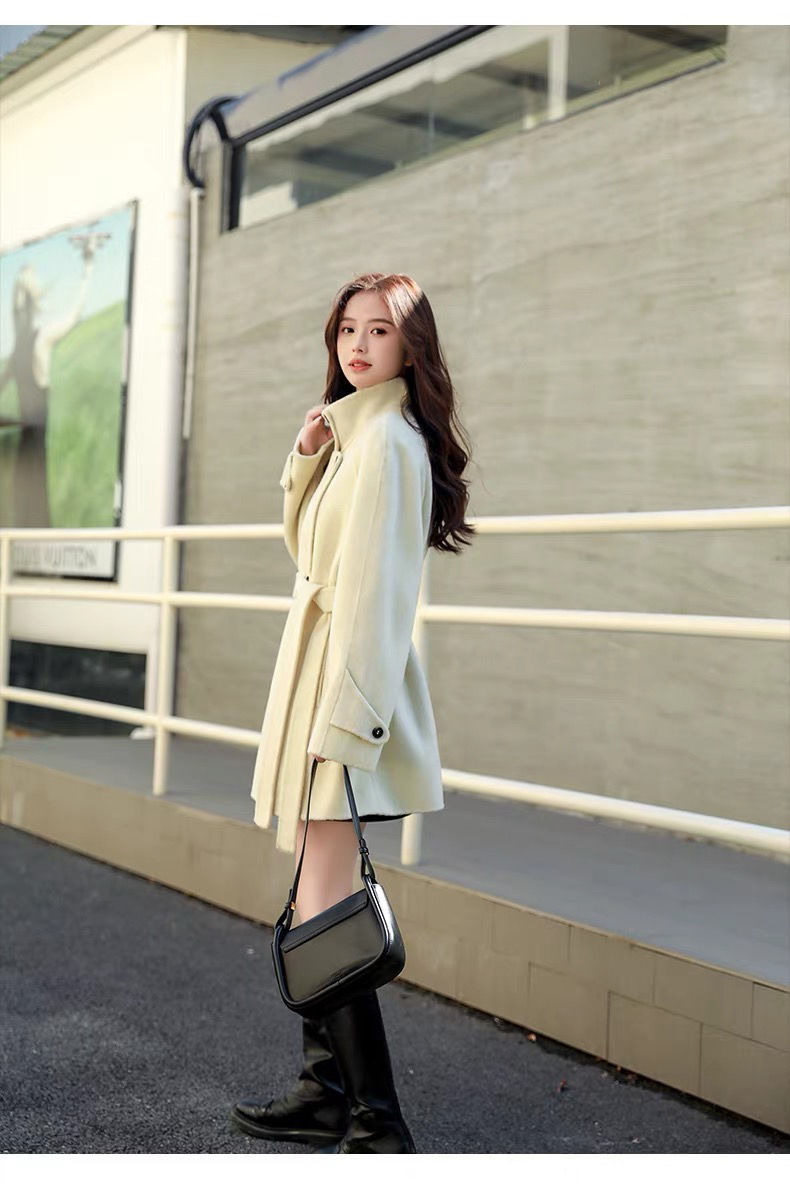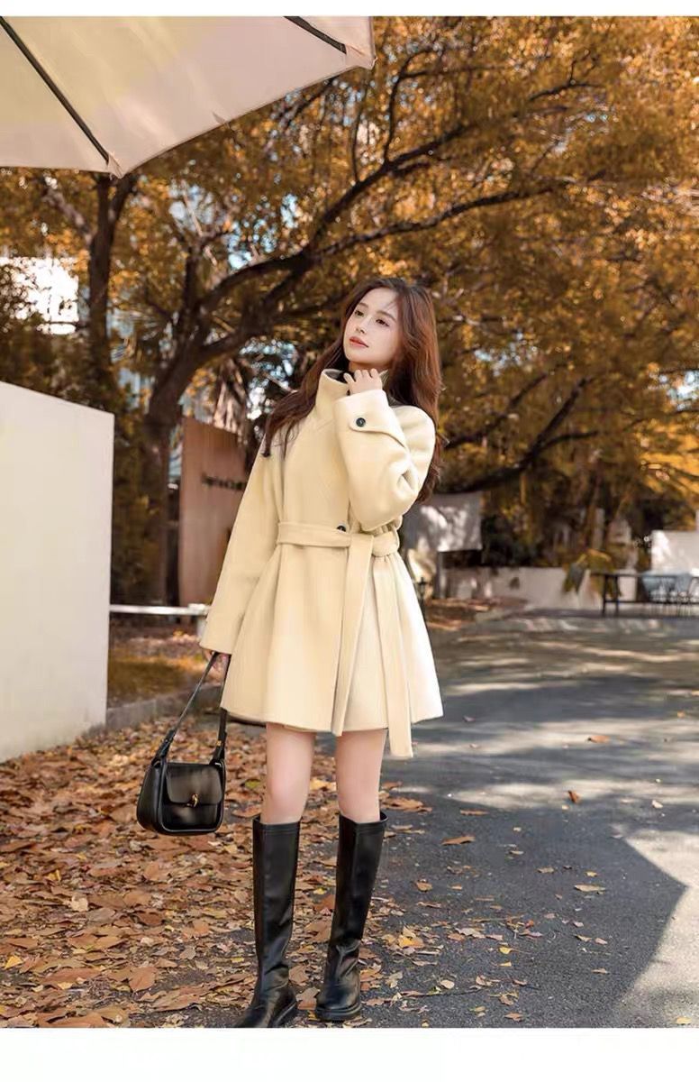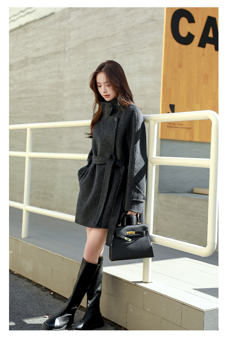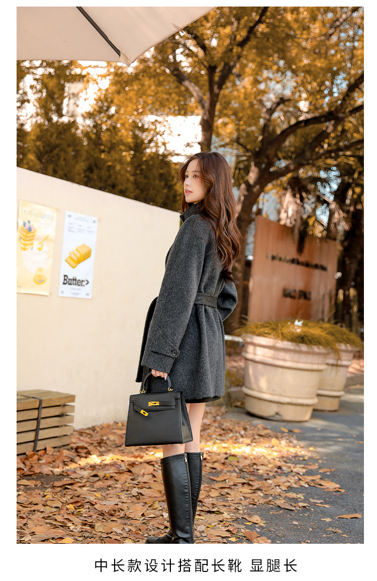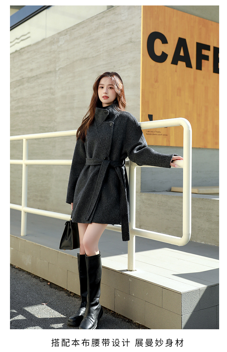 Женское двустороннее кашемировое пальто в японском и корейском стиле с воротником-стойкой, новинка осенне-зимней коллекции 2025 года, элегантная свободная шерстяная куртка для миниатюрных женщин.