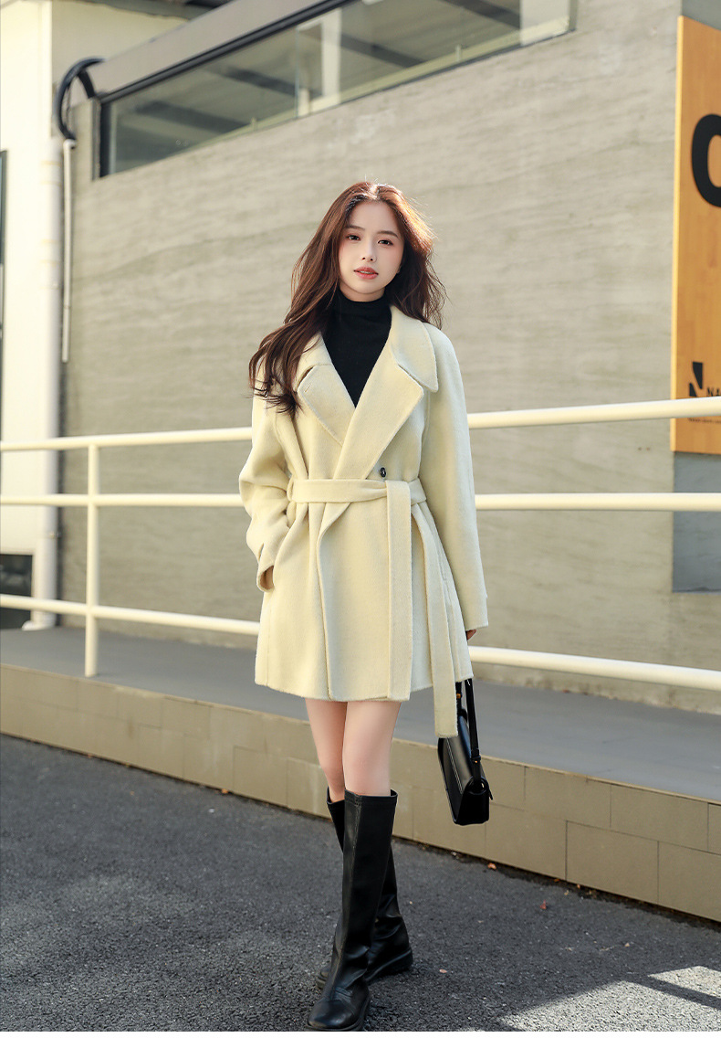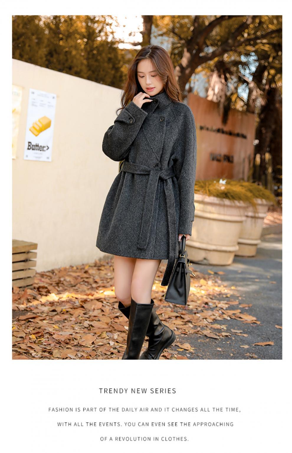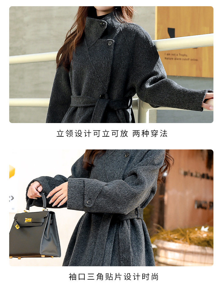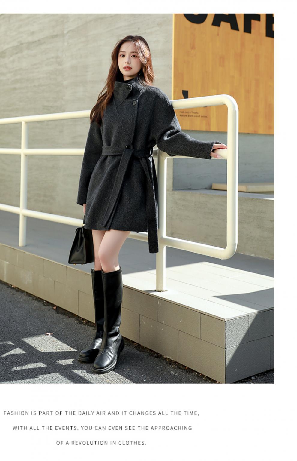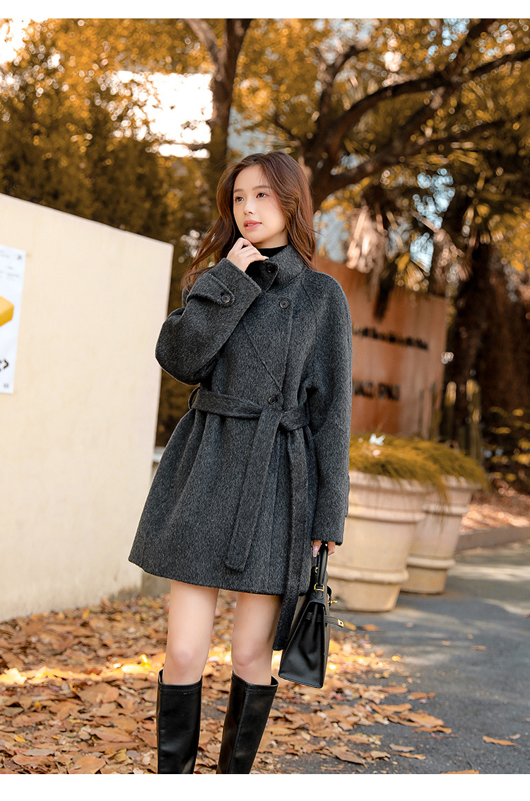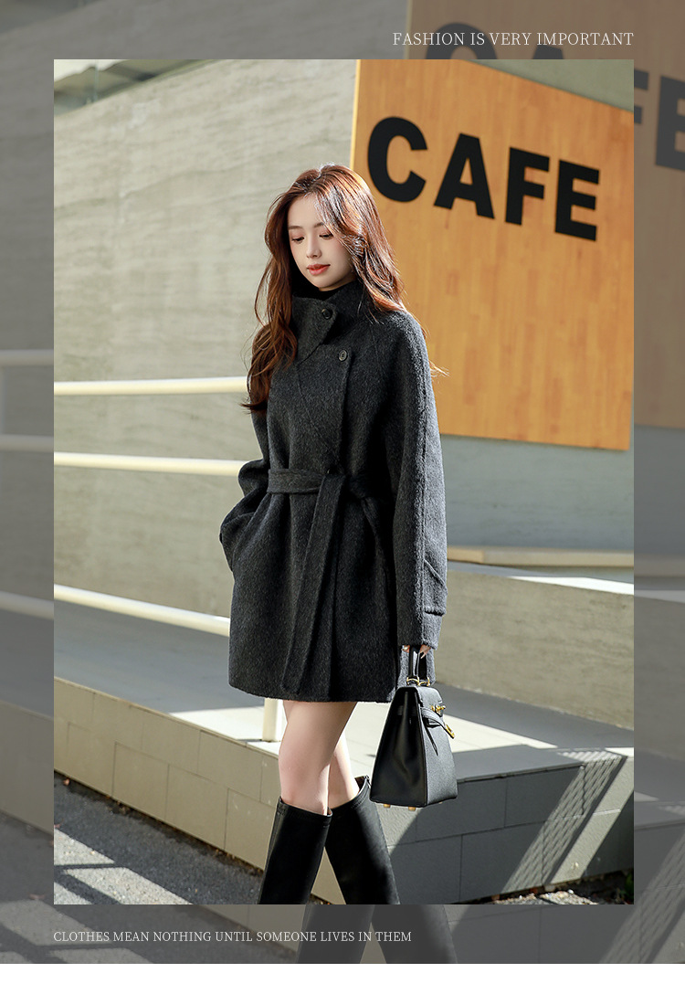 Женское двустороннее кашемировое пальто в японском и корейском стиле с воротником-стойкой, новинка осенне-зимней коллекции 2025 года, элегантная свободная шерстяная куртка для миниатюрных женщин.