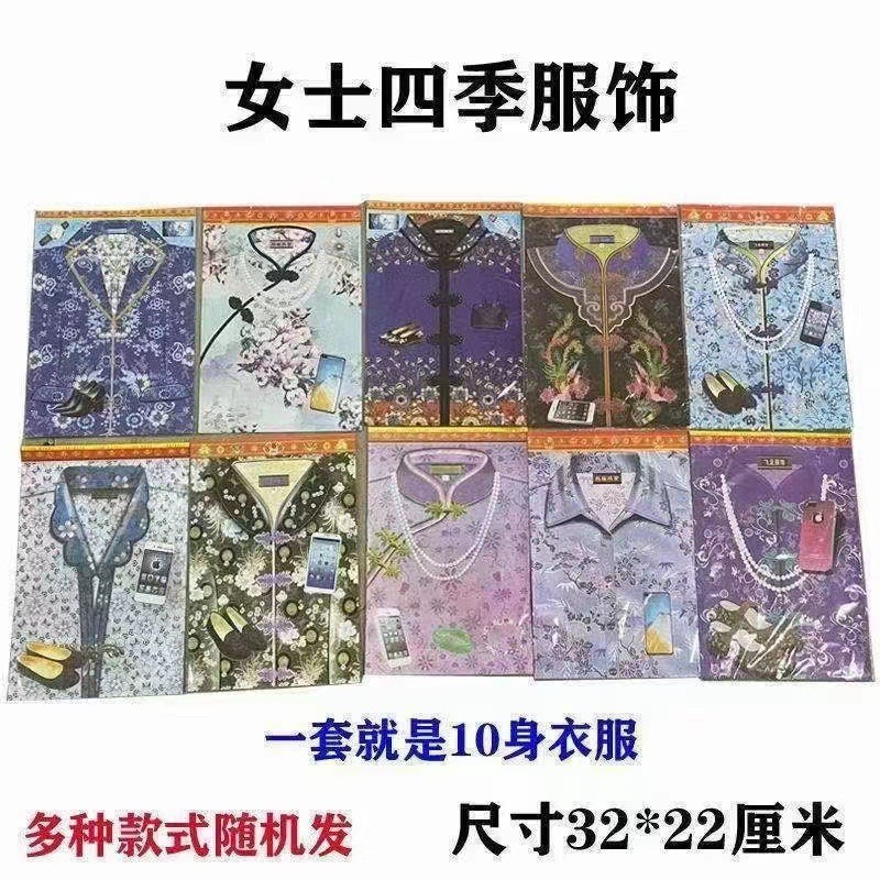 Бумажная одежда для мужчин и женщин, комплекты четырехсезонной одежды, июльская одежда для холодной половинки, сжигание бумаги для поклонения предкам, бумажная одежда для могил, принадлежности для мертвых.
