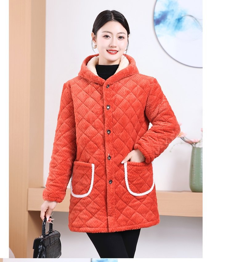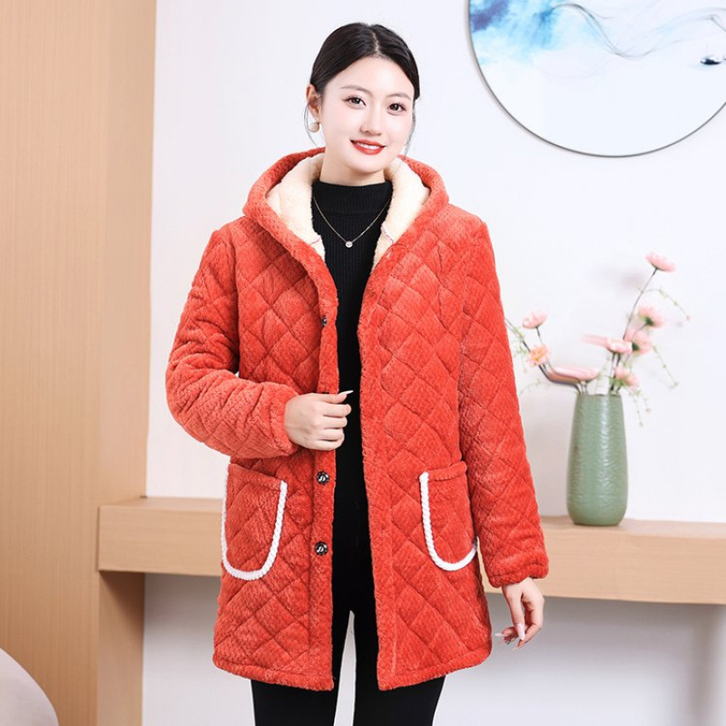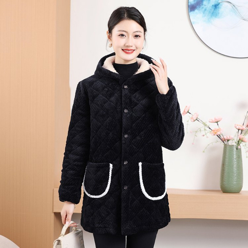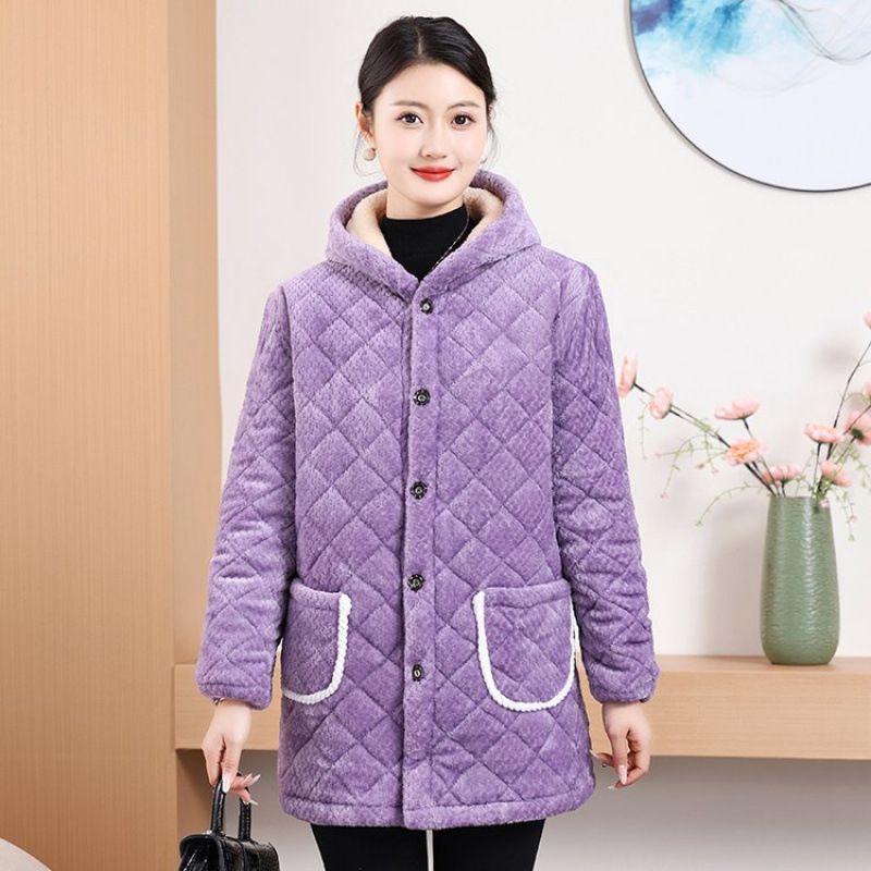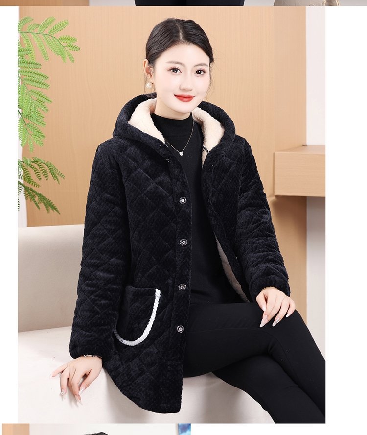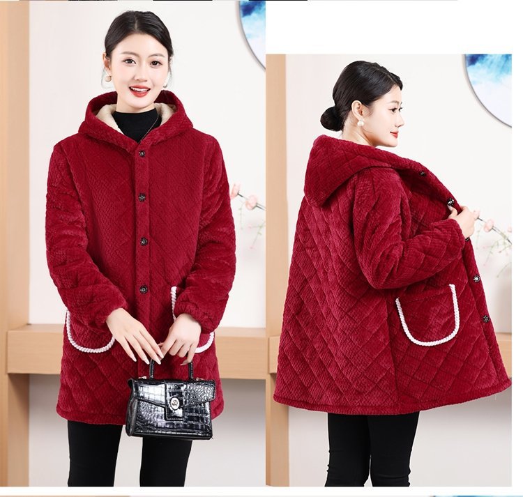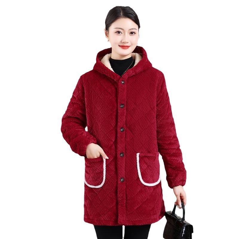 Мама одевает бархат и толстое женское пальто зимняя новая хлопчатобумажная теплая кухня анти-пятно длинная хлопчатобумажная одежда