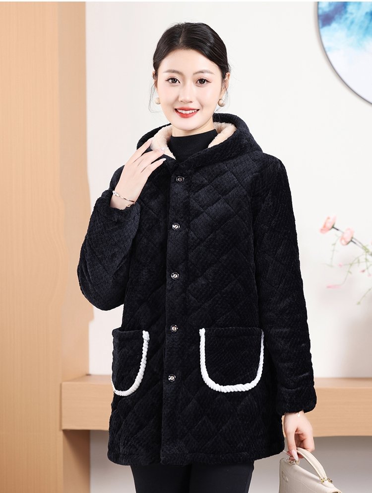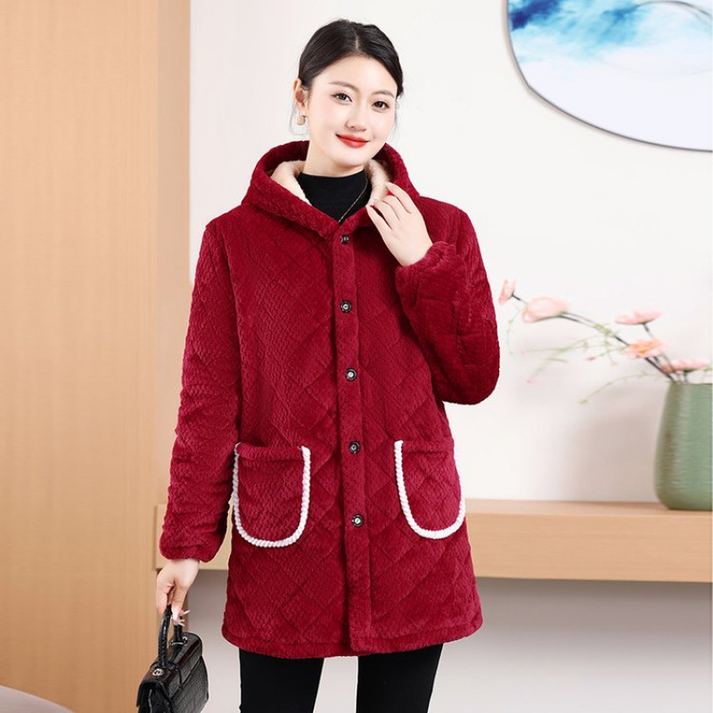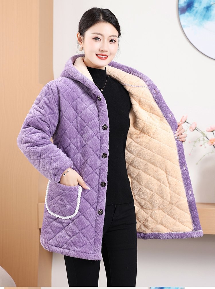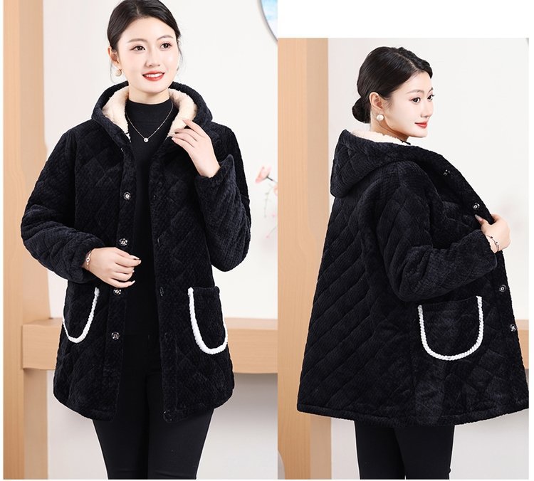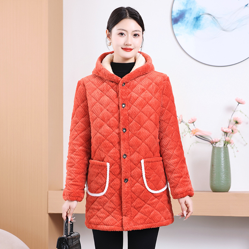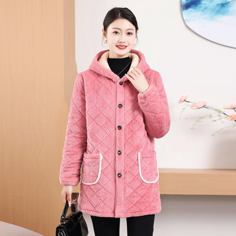 Мама одевает бархат и толстое женское пальто зимняя новая хлопчатобумажная теплая кухня анти-пятно длинная хлопчатобумажная одежда