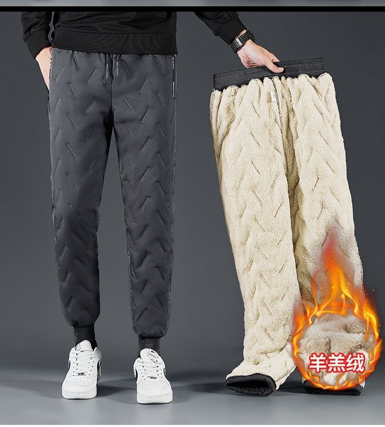 Трансграничные осенние и зимние фланговые брюки мужские толстые ветрозащитные хлопчатобумажные брюки кашемир морозостойкие теплые мужские повседневные брюки прилив