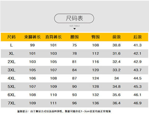L; XL; 2XL; 3XL; 4XL; 5XL; 6XL; 7XL