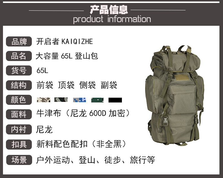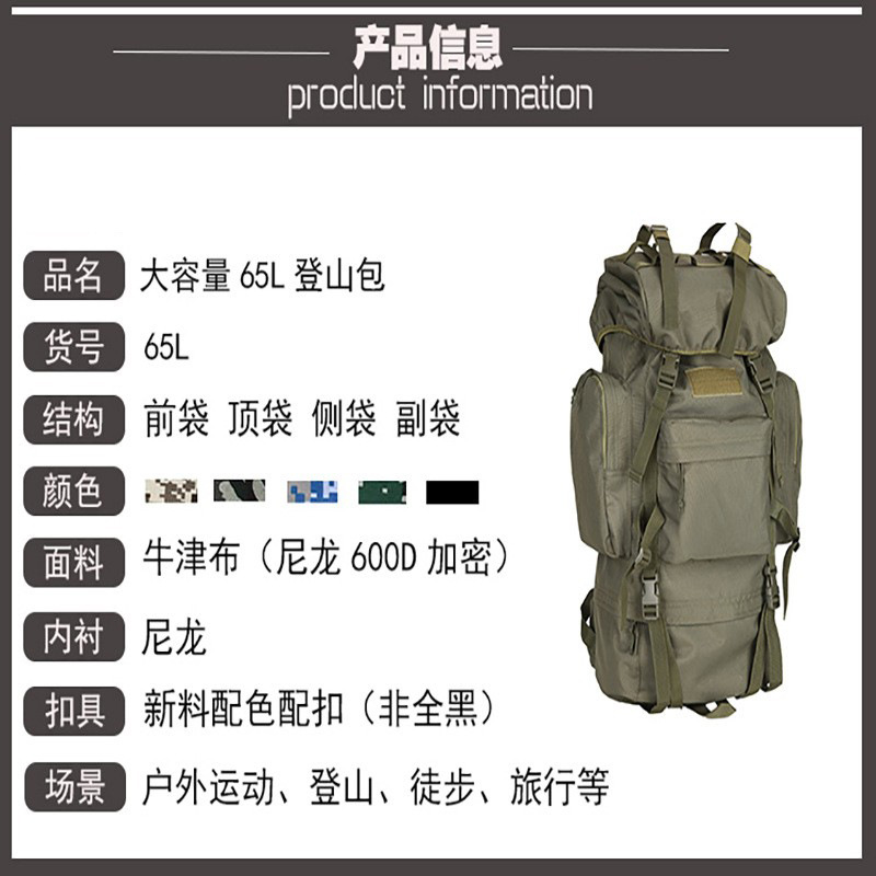 Рюкзак для альпинизма, прямые продажи с фабрики, мужской и женский, большой вместимости 65 л, водонепроницаемый, для кемпинга и активного отдыха на природе.