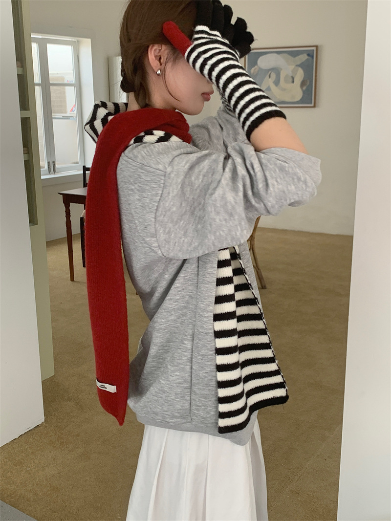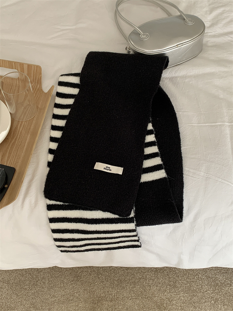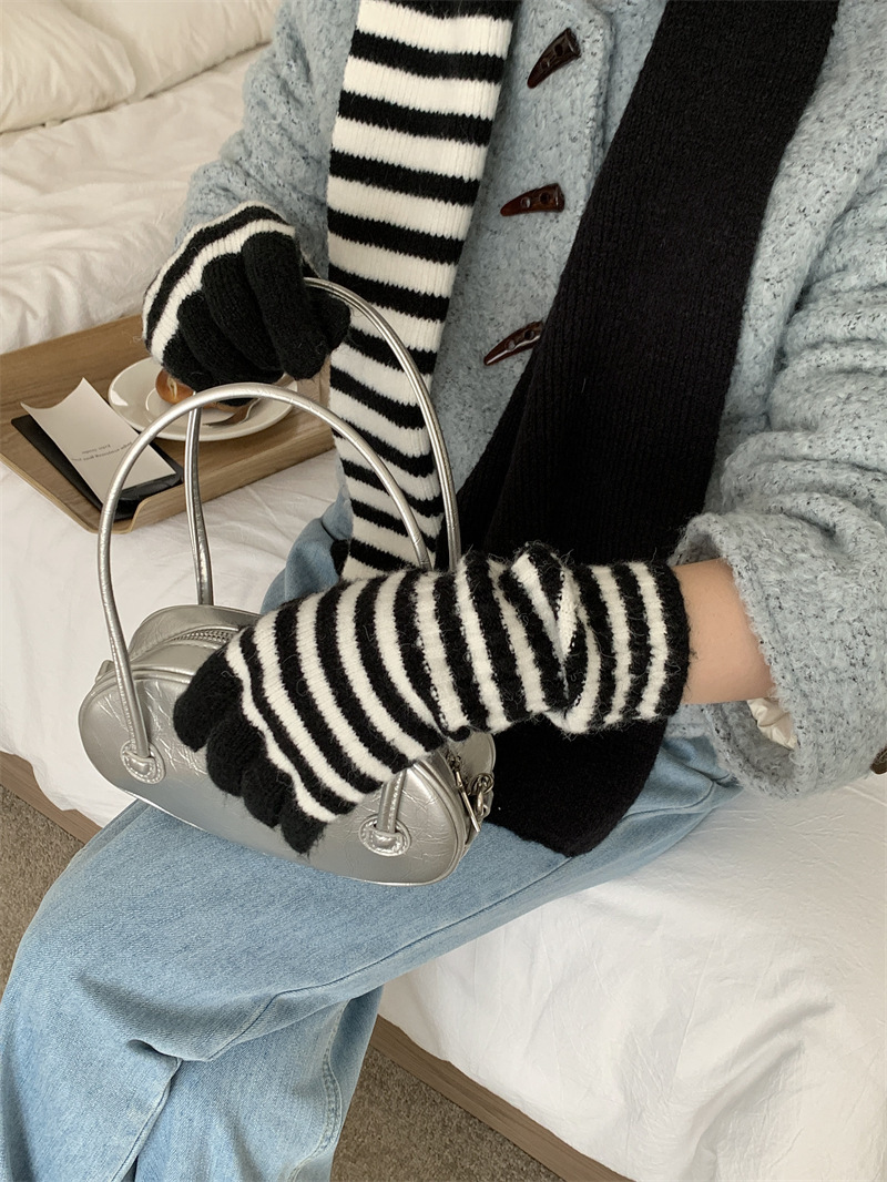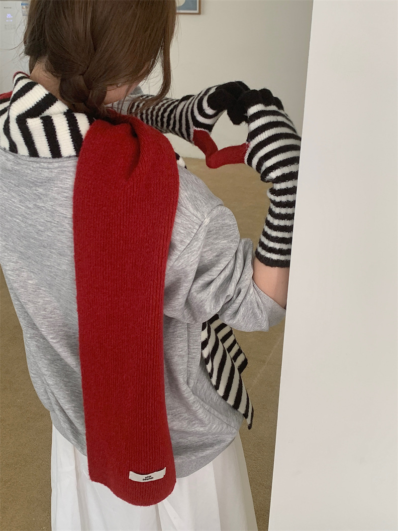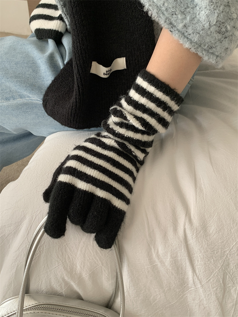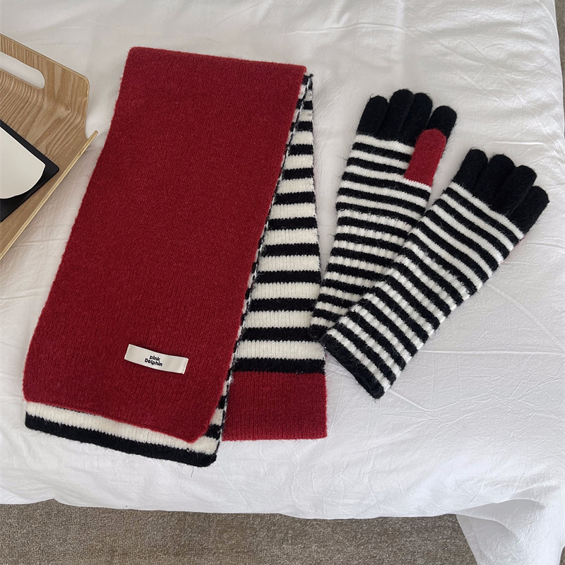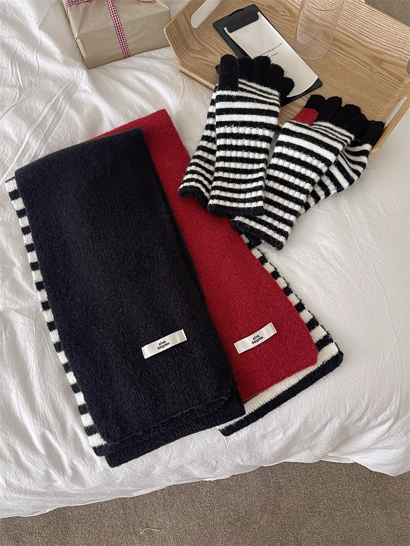Черно-белая полосатая шерстяная перчатка комбинированный набор шарф женский осенне-зимний утолщенный теплый и холодный трикотаж пара