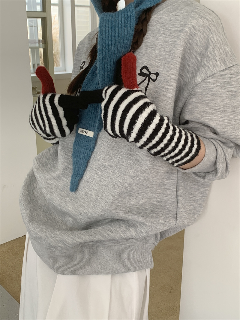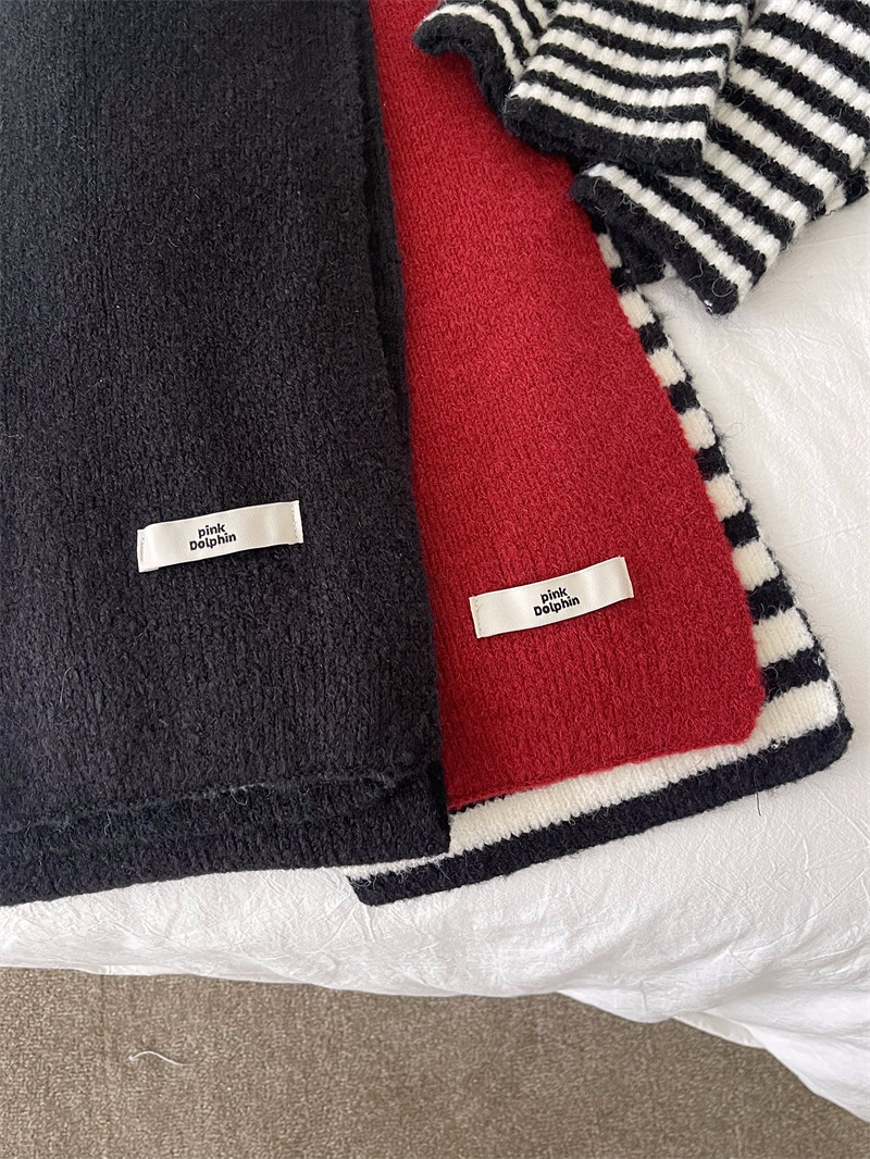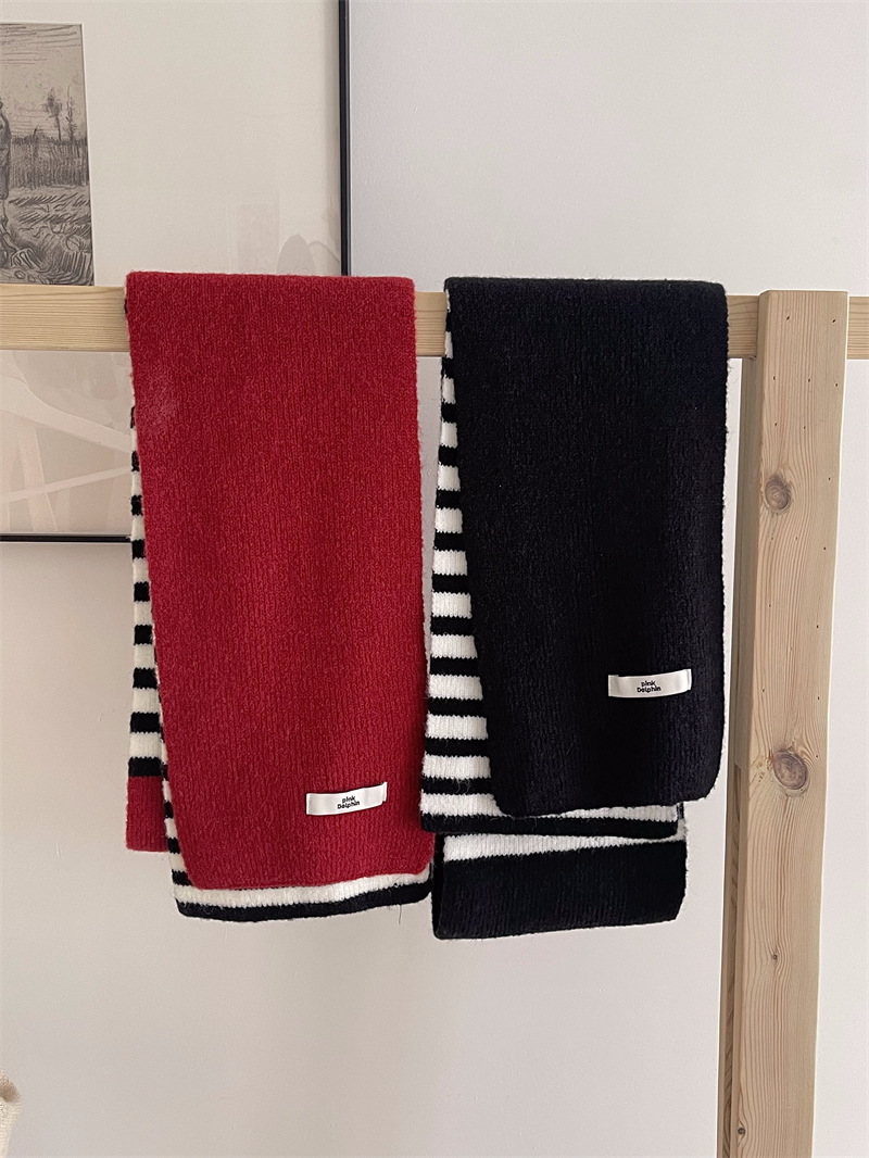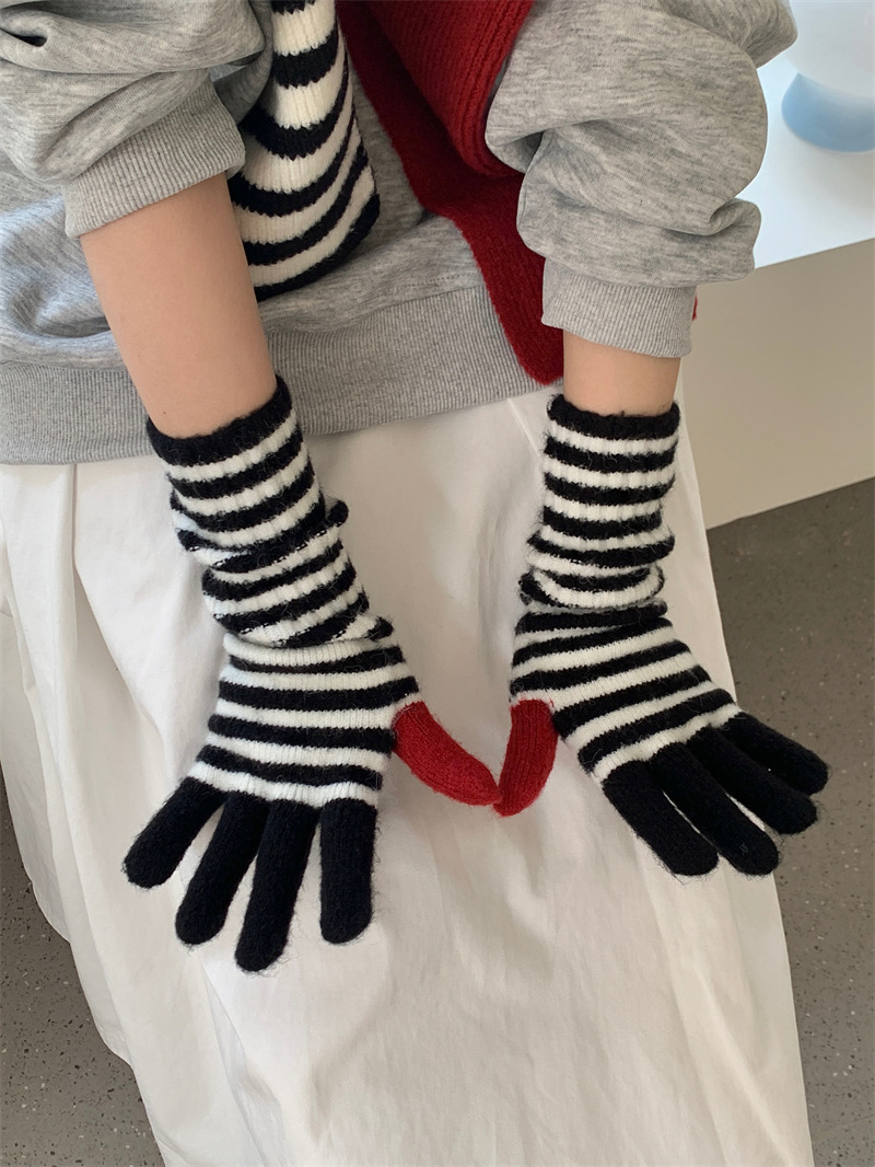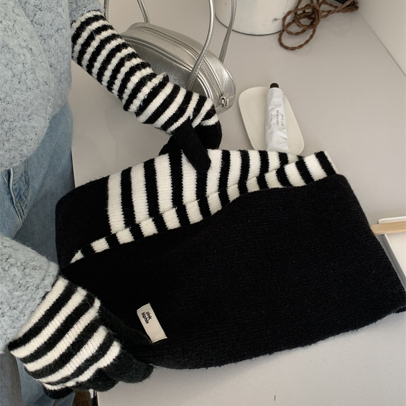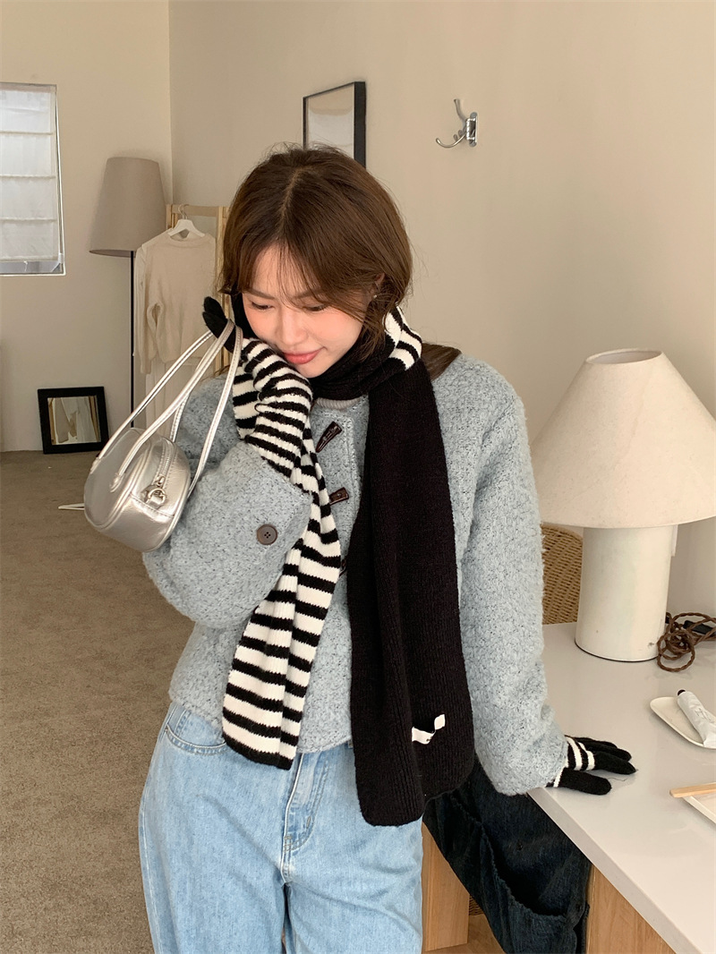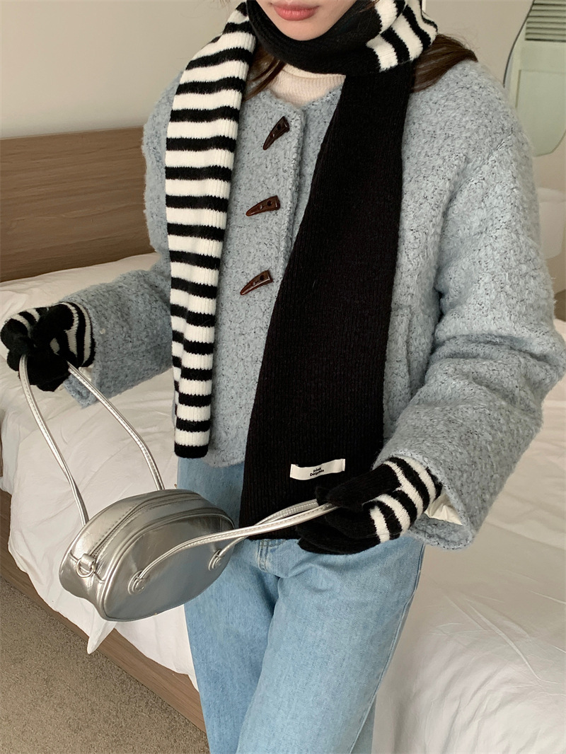 Черно-белая полосатая шерстяная перчатка комбинированный набор шарф женский осенне-зимний утолщенный теплый и холодный трикотаж пара