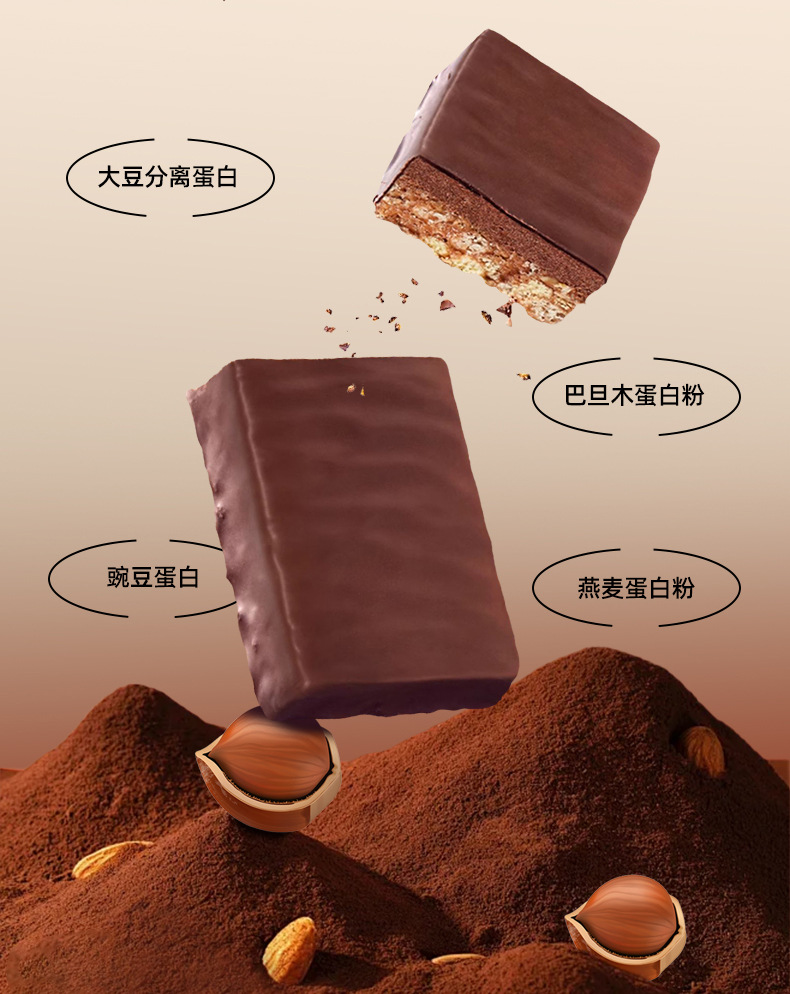 Батончик с чиа и орехами, заменитель пищи, сытный энергетический батончик, повышающий жизненную силу, с пребиотиками, высоким содержанием пищевых волокон, двухслойный протеиновый батончик