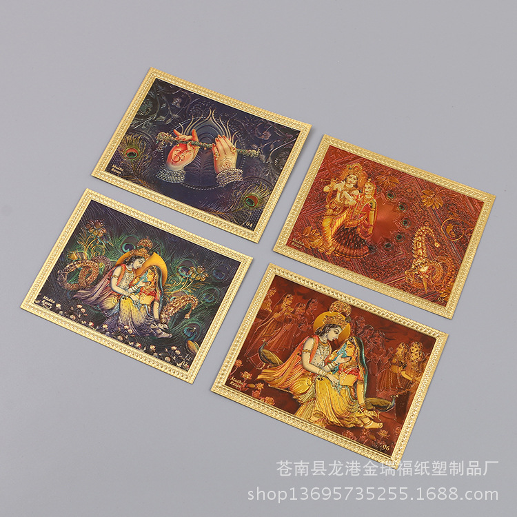 Трехмерные индийские статуи с тиснением, тайские статуи, мастерство работы с золотой фольгой, рефрактивное тиснение, изысканная печать статуй Будды.