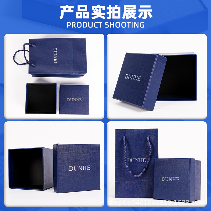 Подарочная коробка для галстука-бабочки, бизнес-класса, синего цвета, квадратной формы, с возможностью нанесения логотипа, оптом.