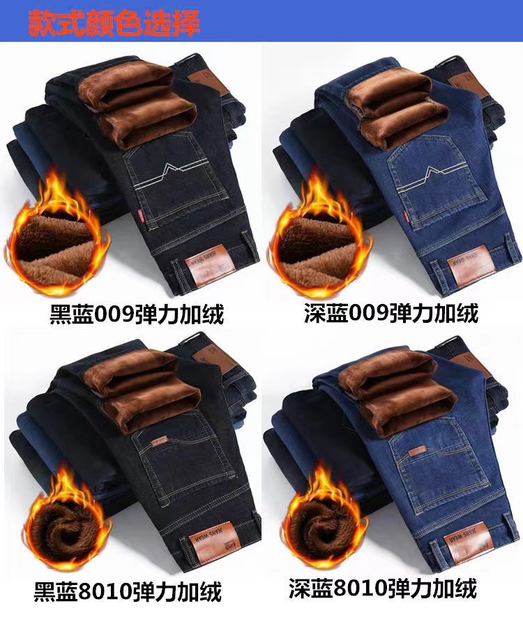 Плюшевые джинсы мужские утолщенные теплые прямые трусы свободная работа устойчивая к ношению на строительной площадке среднего бизнеса повседневные дешевые зимние брюки