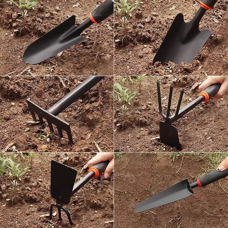 Широкая лопата/150 шт.; Узкая лопата/120 шт.; Грабли с пятью зубьями/120 шт.; Головка двойного назначения/120 шт.; Широкая лопата из нержавеющей стали/150 шт.