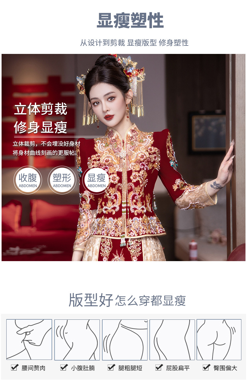 Свадебный костюм Свадебный костюм невесты 2025 новый маленький человек новый китайский дракон и феникс свадебное платье шоу и большой размер тяжелой работы