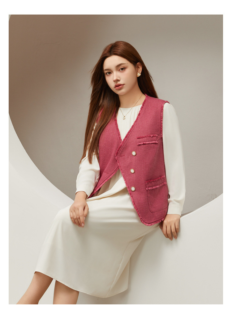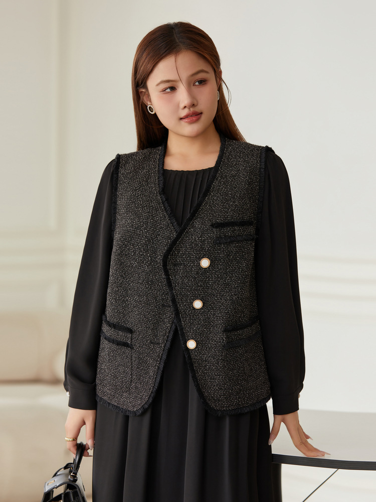 Сплошное шоу большой размер женской одежды высокого класса модный стиль дикие кисточки с V-образным вырезом жилет жирный mm2024 осенний новый