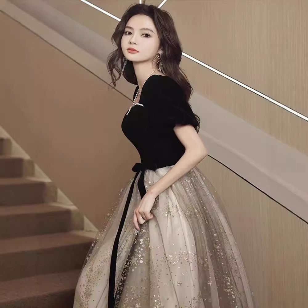 Вечернее платье для женщин, новинка 2025 года, черное, в стиле легкой роскоши, нишевое, с высококачественной текстурой, для выпускного вечера, длинное платье для экзамена по искусству.
