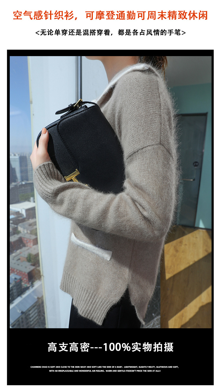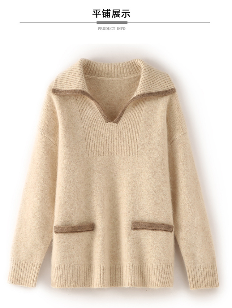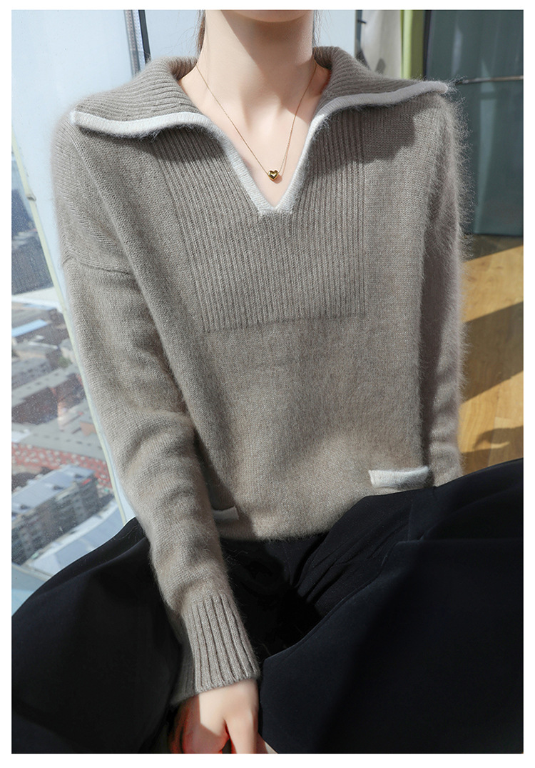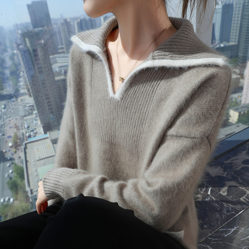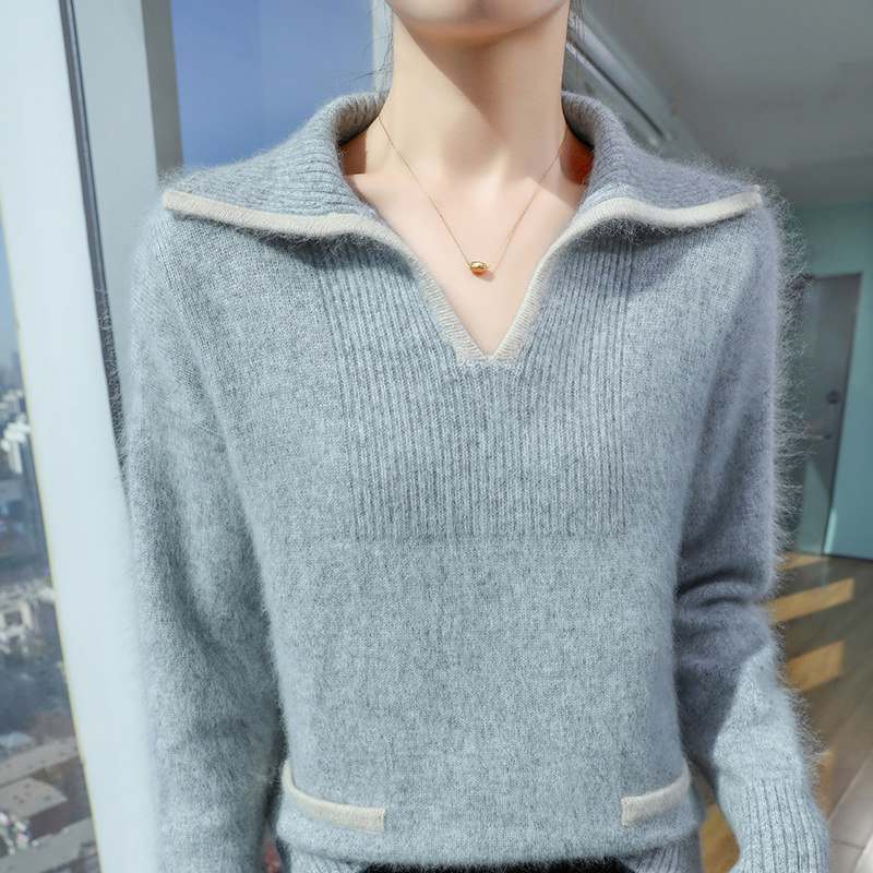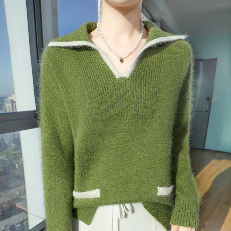 Футболка с цветным темно-синим воротником 2024 Новый женский пуловер свитер