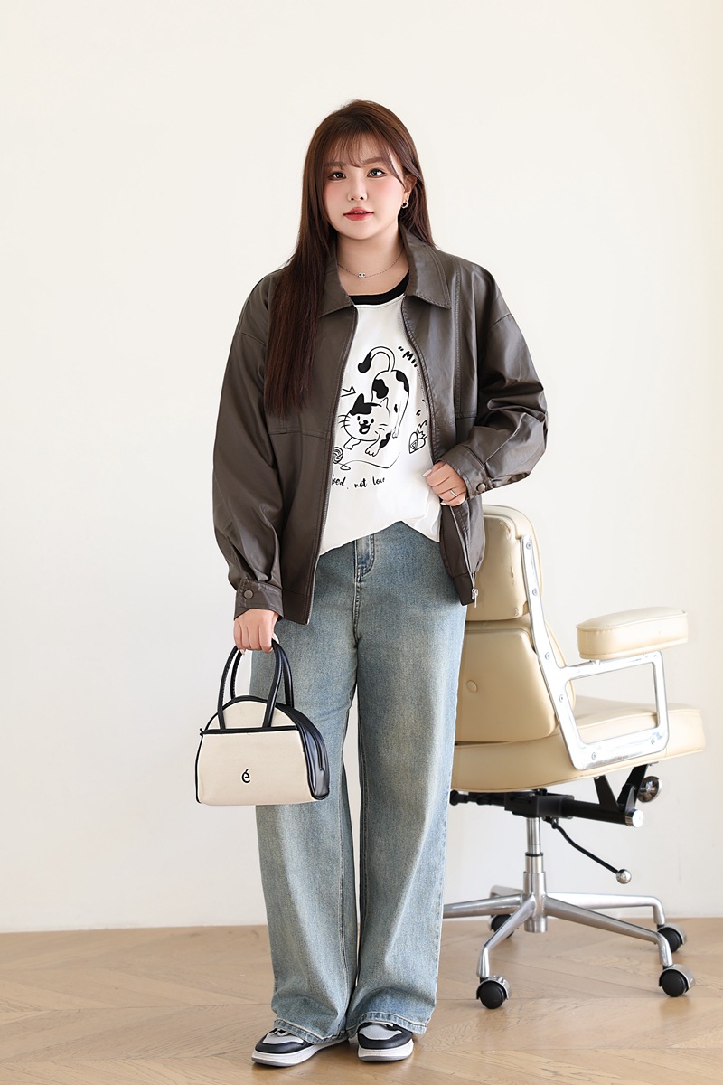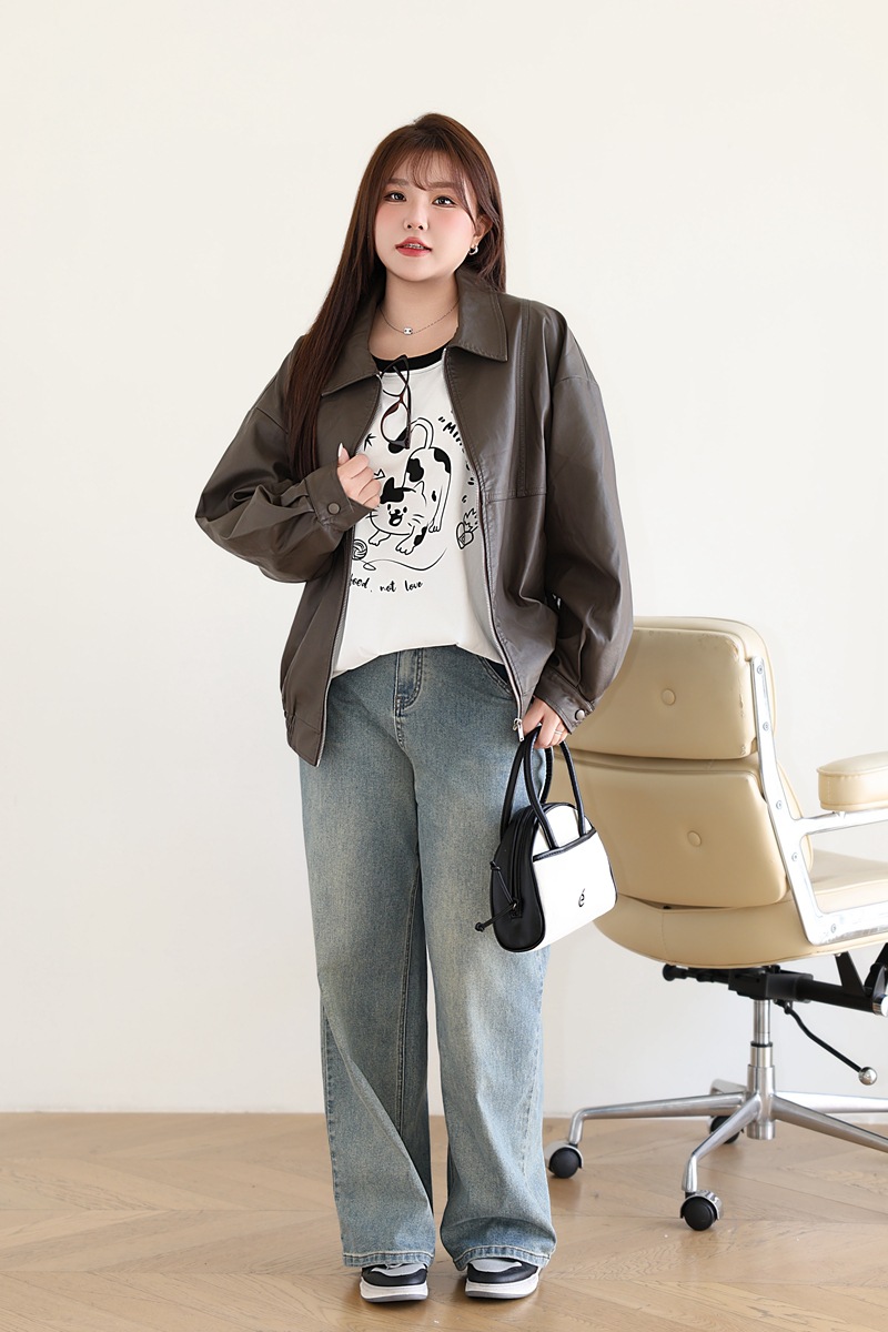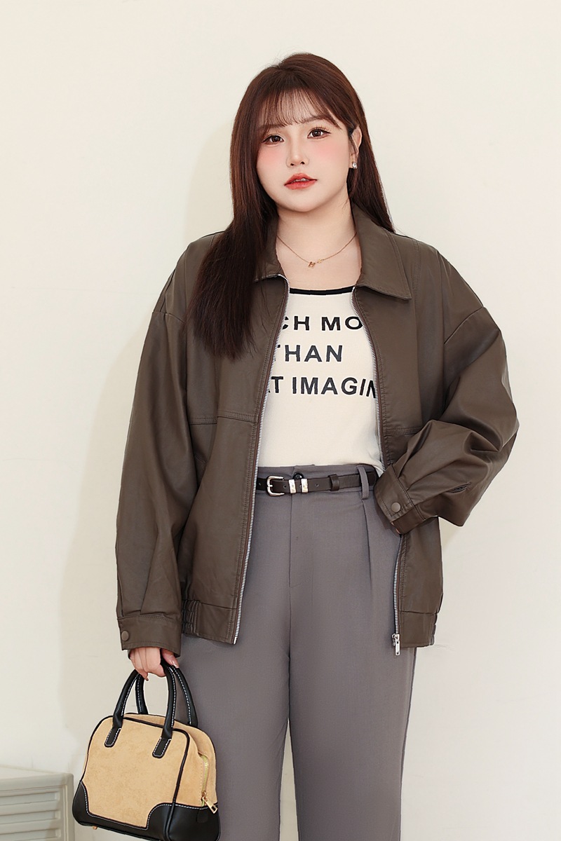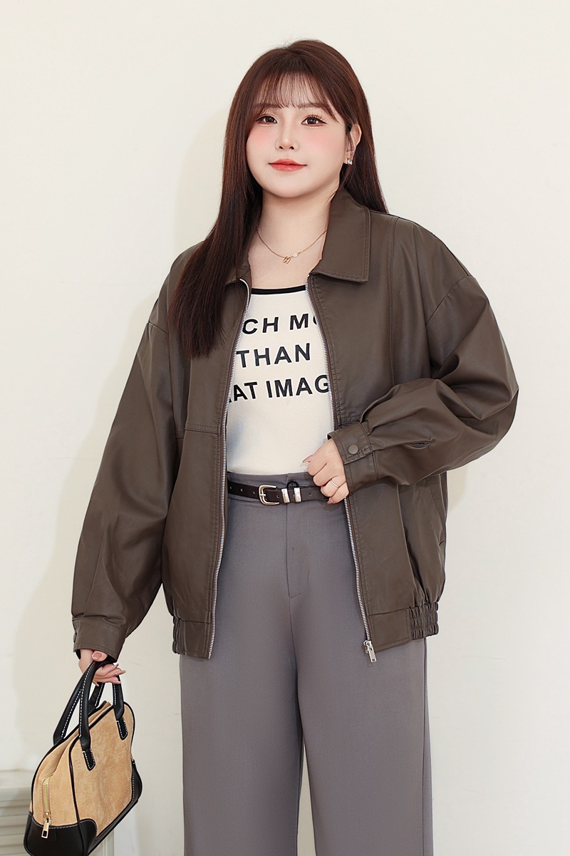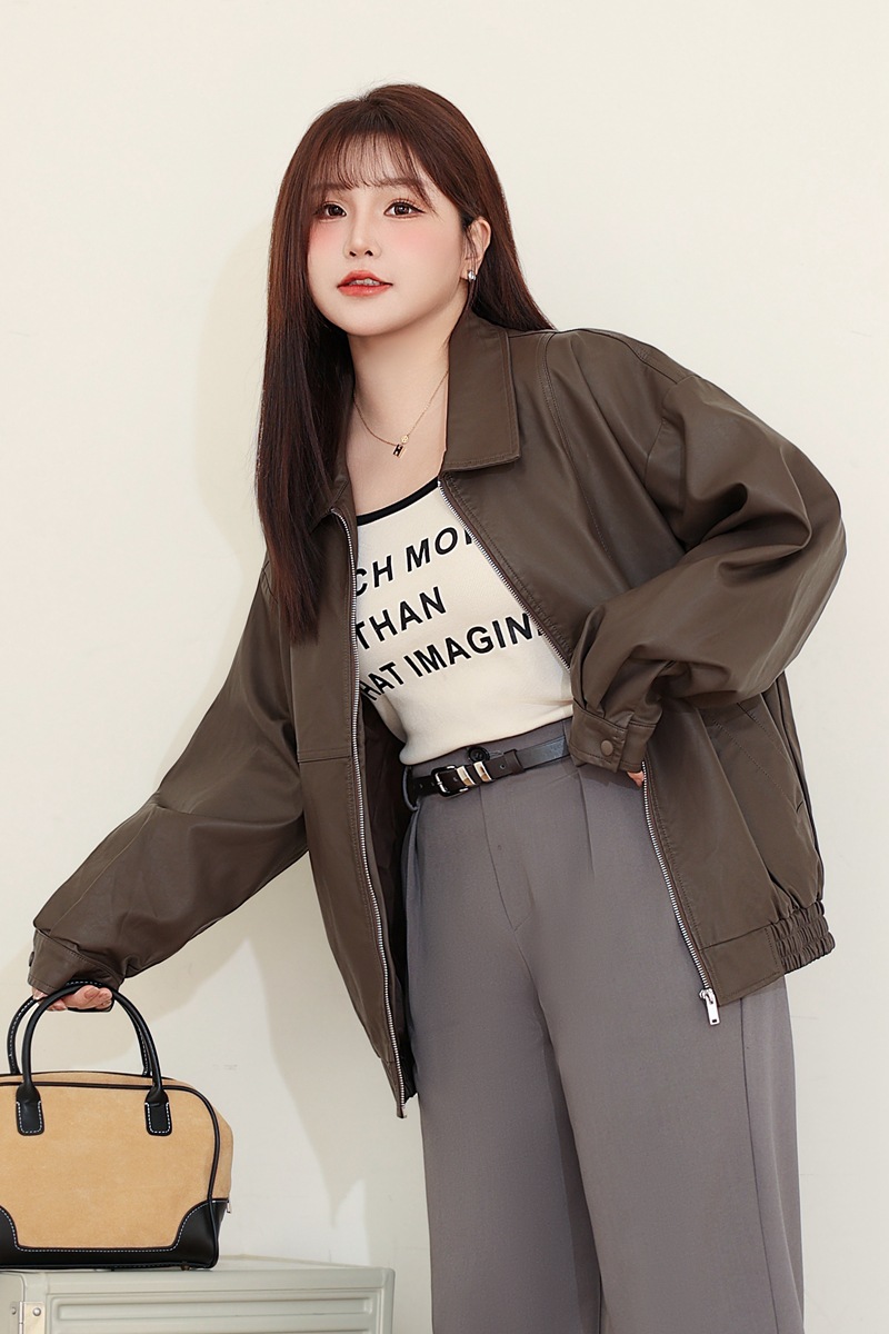 Ретро свободный и красивый локомотив ПУ кожаная одежда Run N8805 большой размер повседневная свободная PU кожаная куртка топ