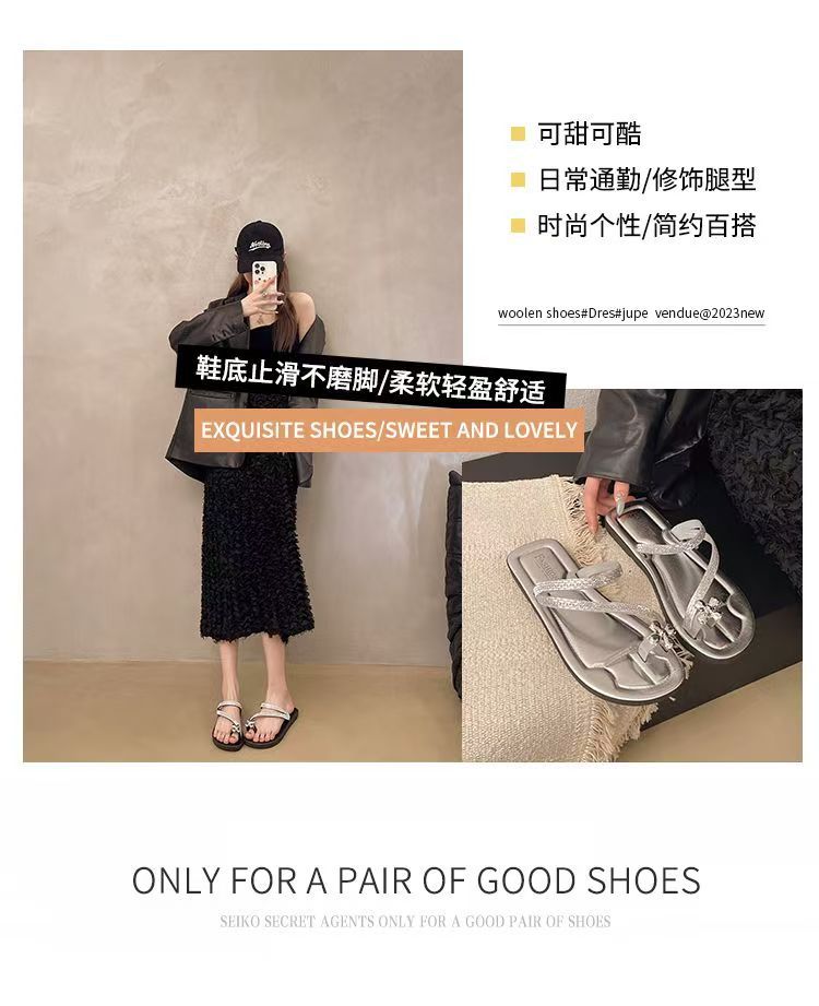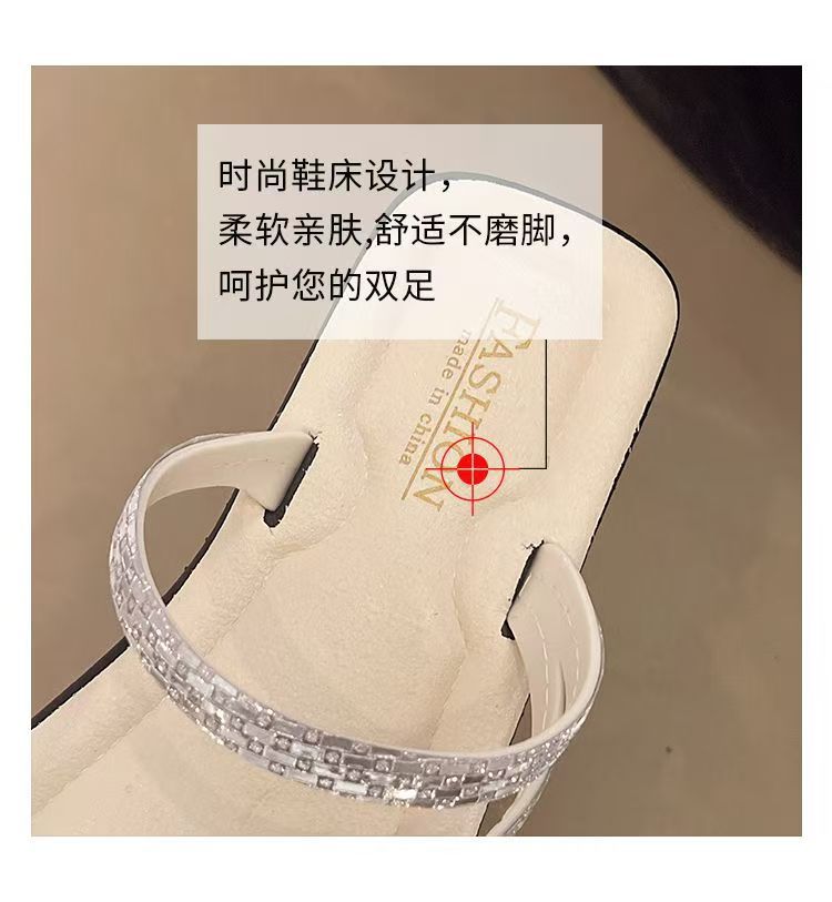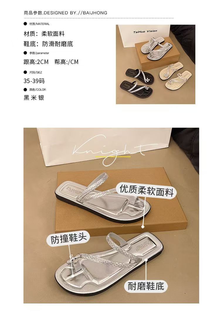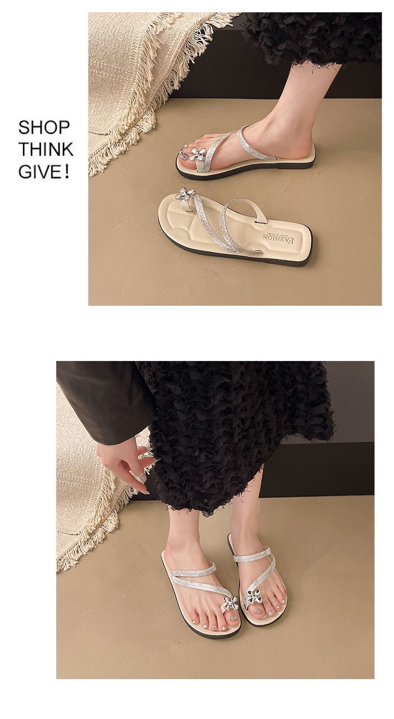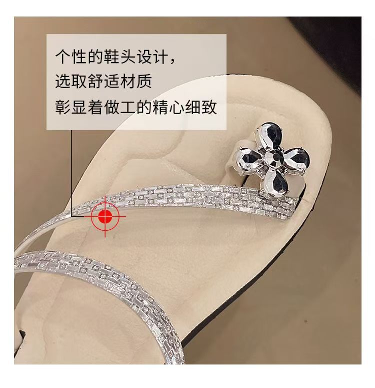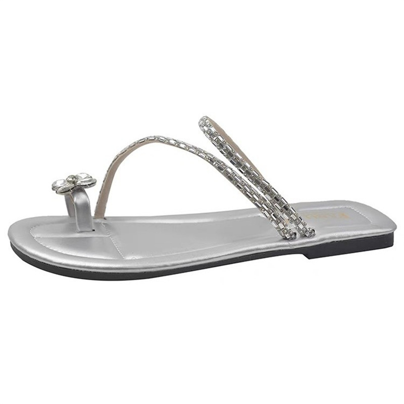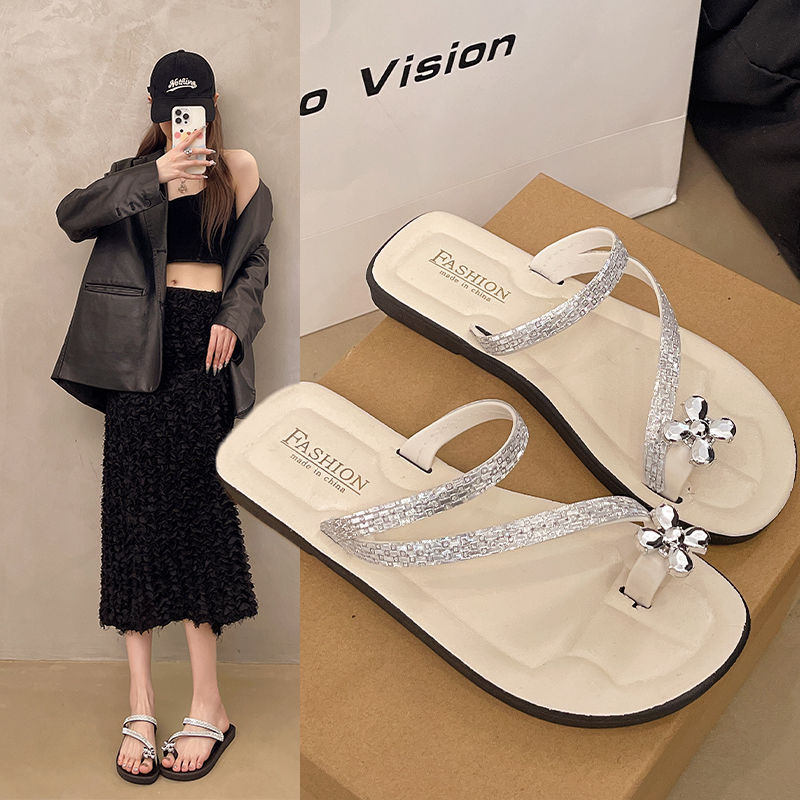 Женские блестящие тапочки с бриллиантами на плоской подошве, летняя верхняя одежда, новинка 2025, модные элегантные приморские пляжные сандалии на мягкой подошве