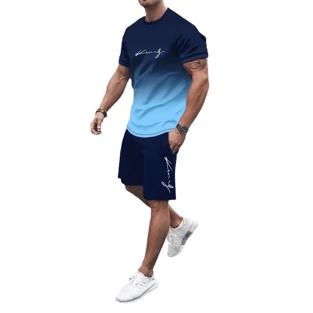 2024 летняя градиентная цветная шорты с коротким рукавом набор 3D цифровой принт минималистская буква градиентная футболка набор из двух частей для мужчин