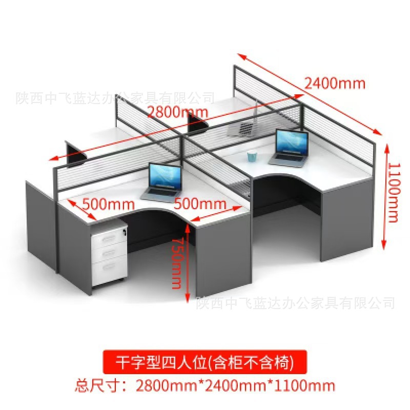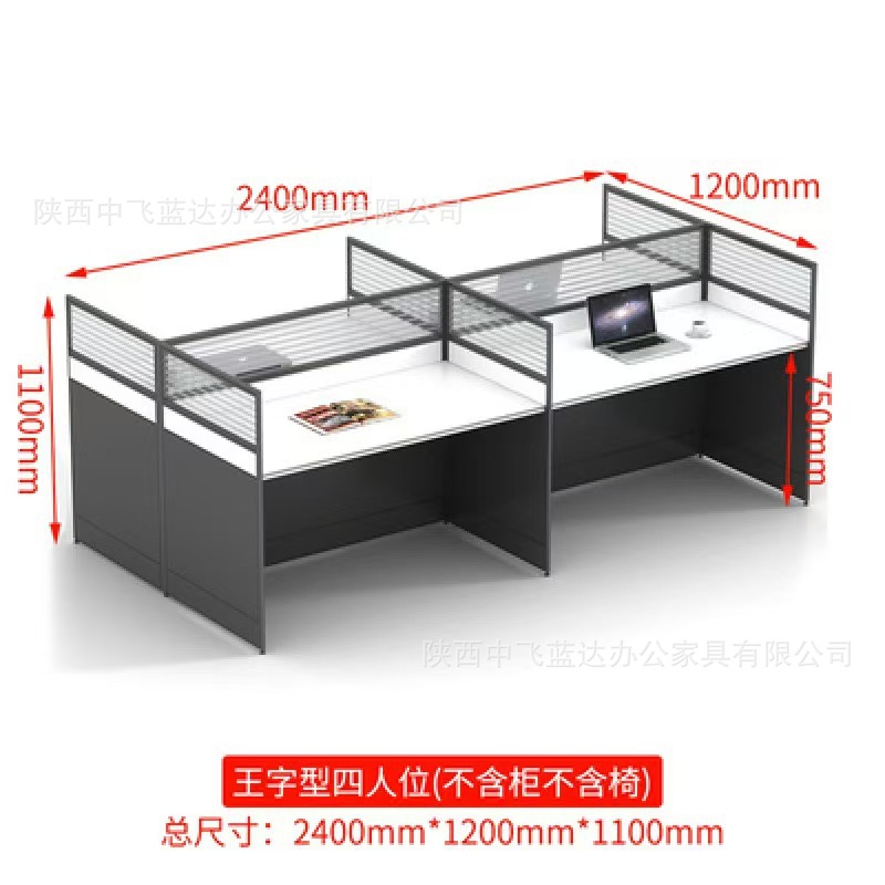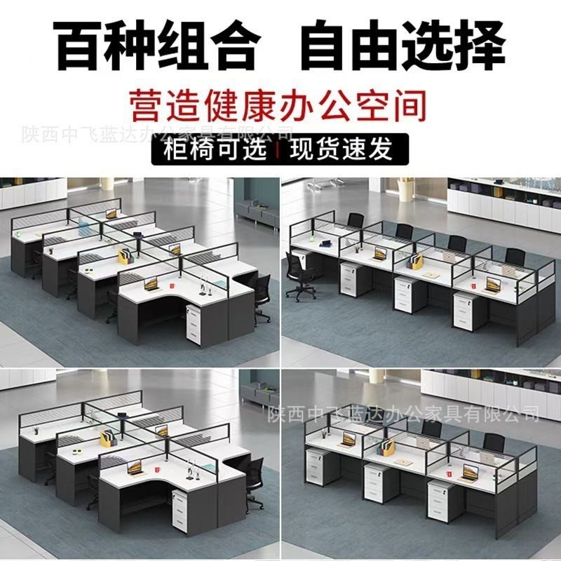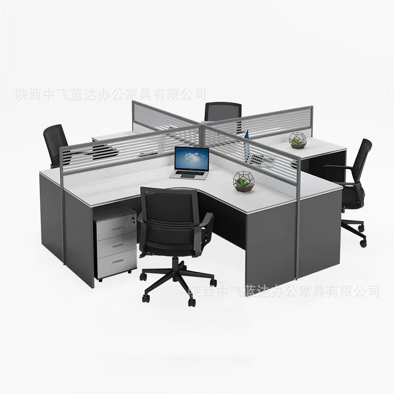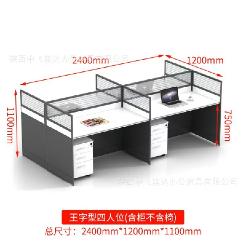 Офисный стол-перегородка для четырех человек, комплект из двух рабочих мест и стульев, оптовые офисные столы для сотрудников.