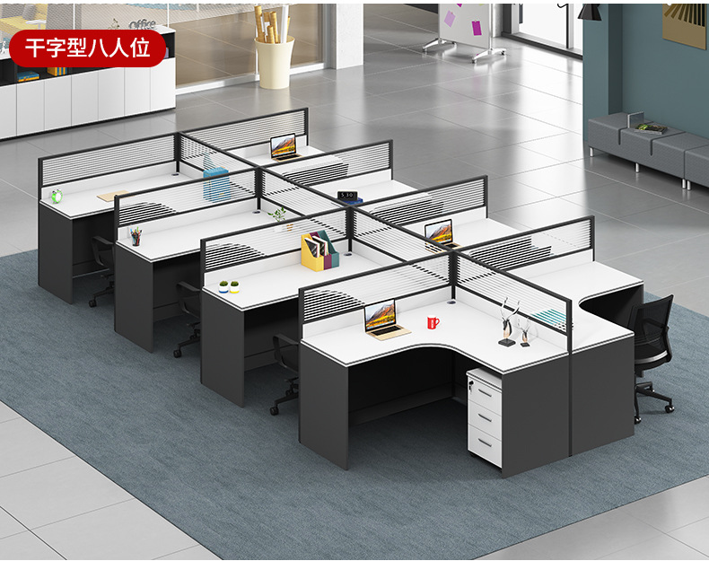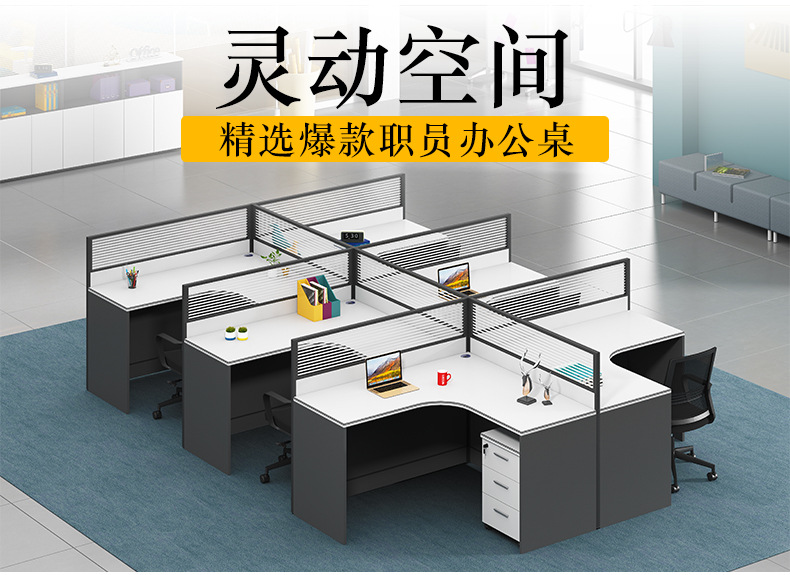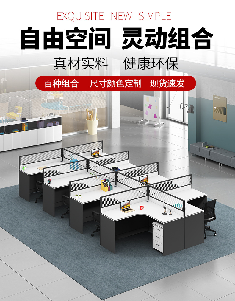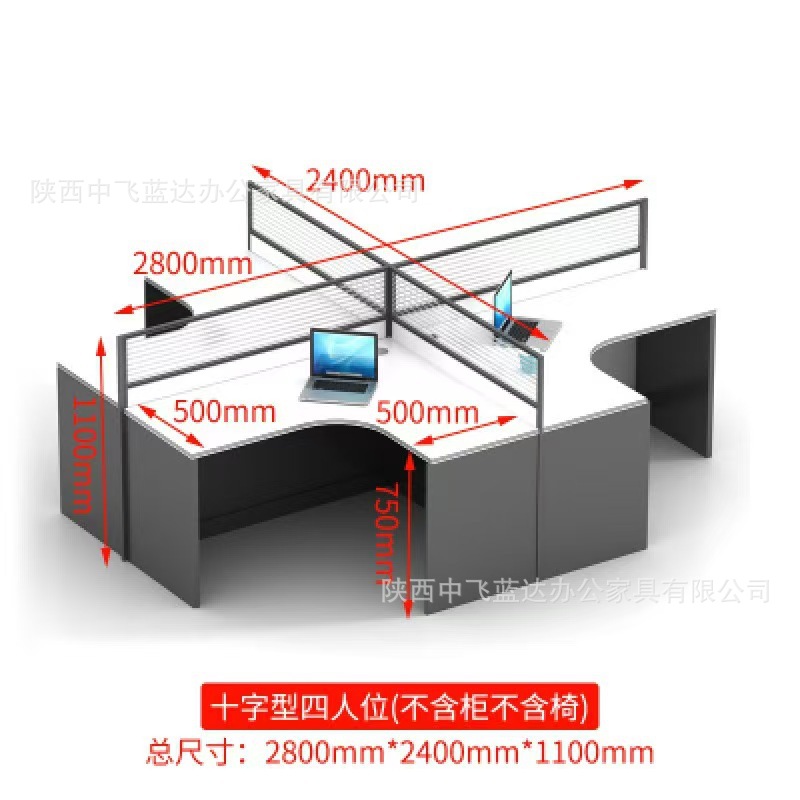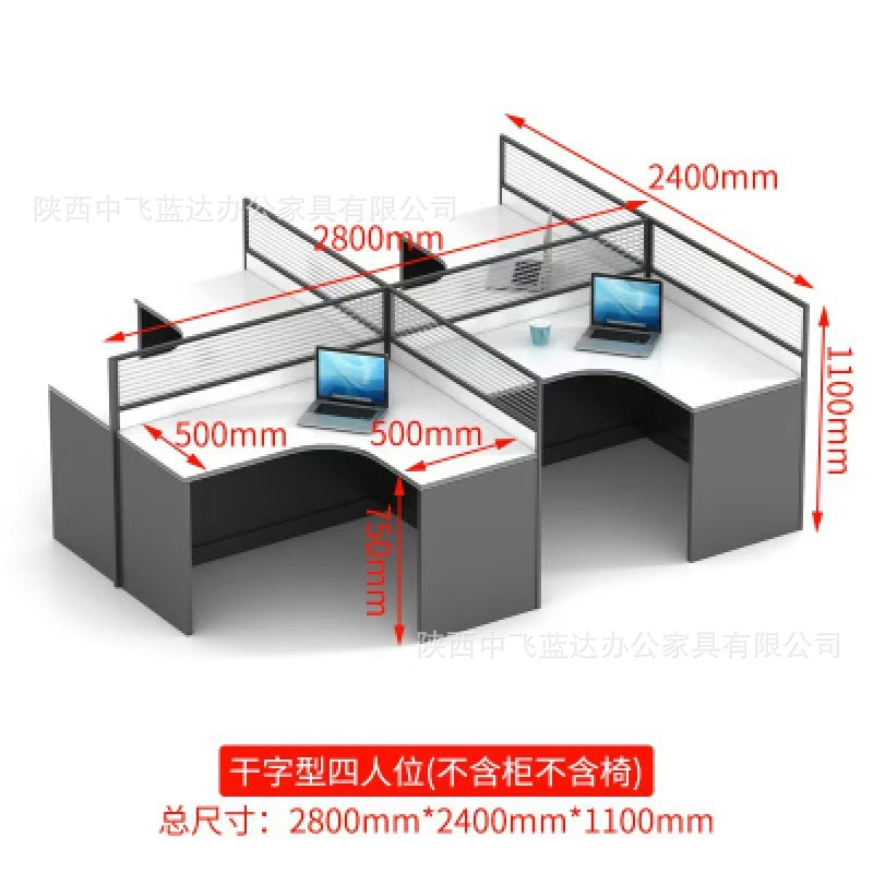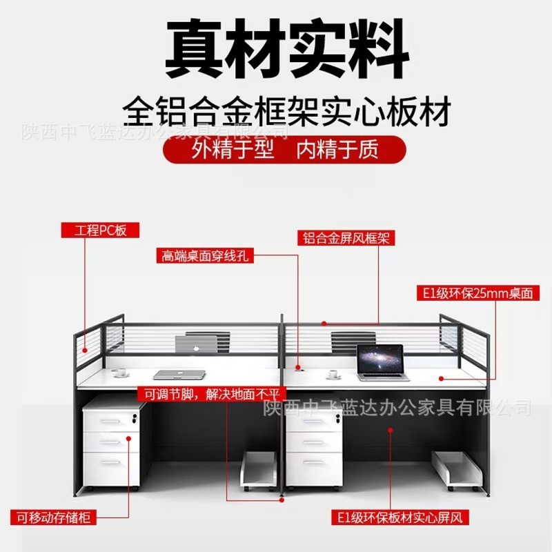 Офисный стол-перегородка для четырех человек, комплект из двух рабочих мест и стульев, оптовые офисные столы для сотрудников.