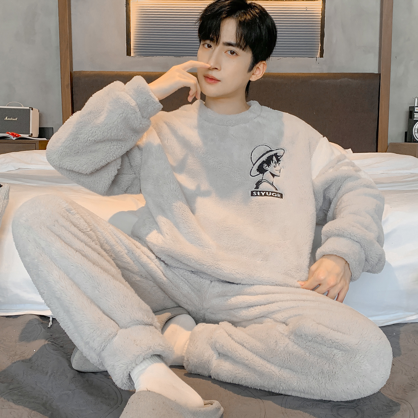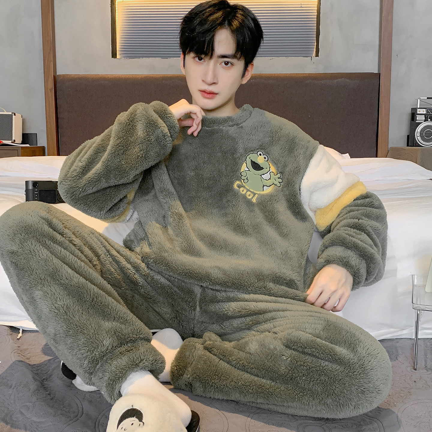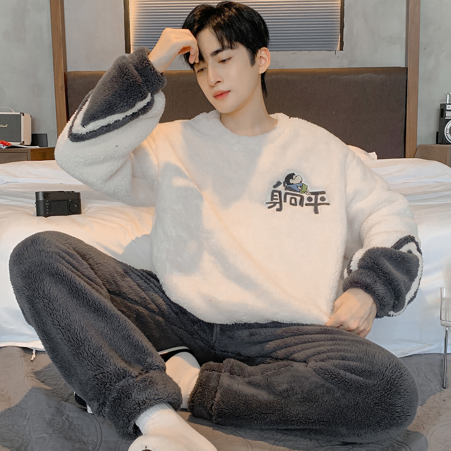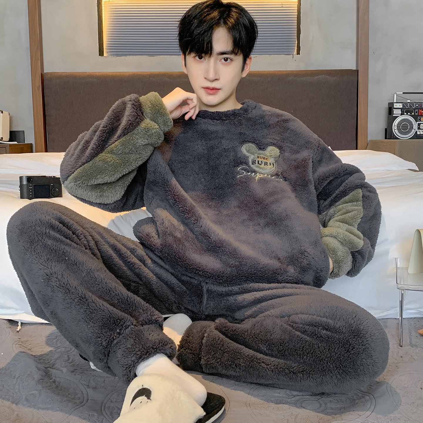 Зимняя пижама для мальчиков утолщение коралловый бархат новый зимний домашний костюм большой размер досуг для подростков