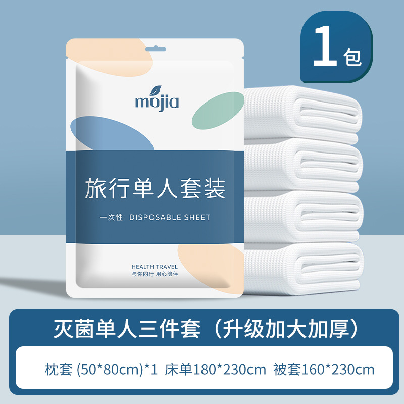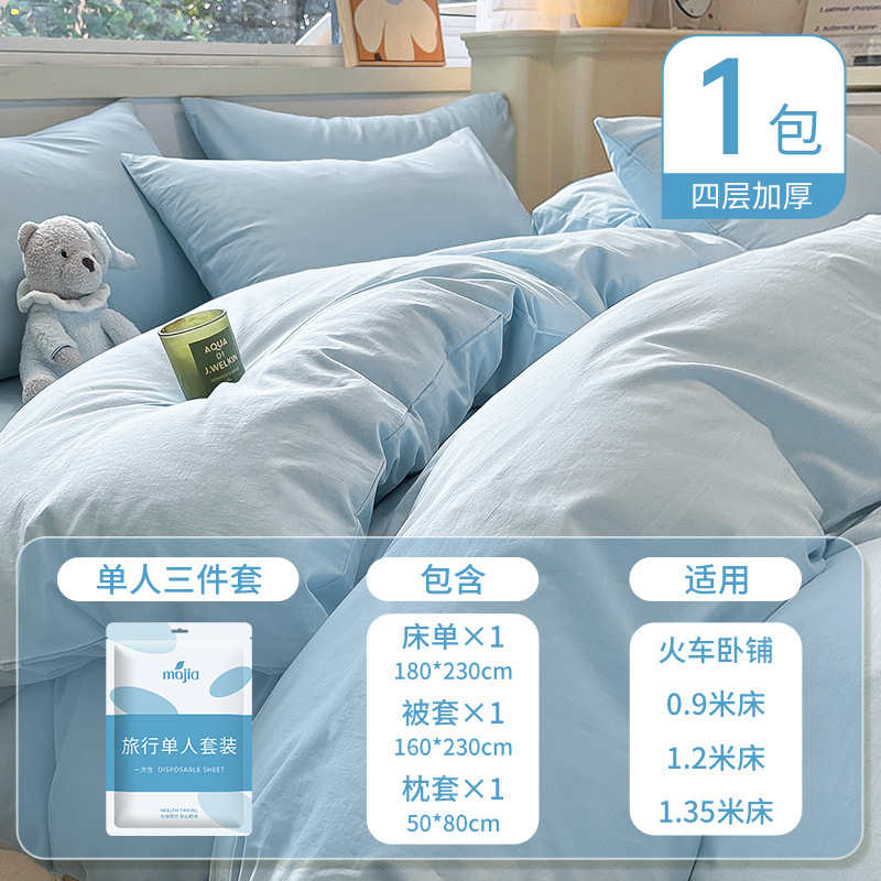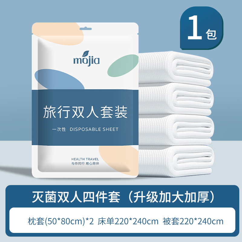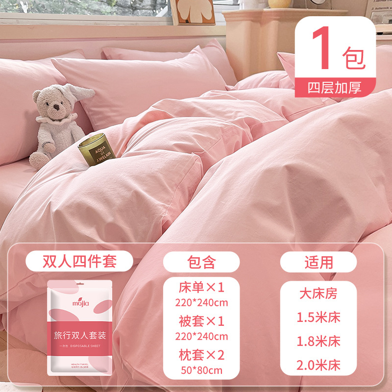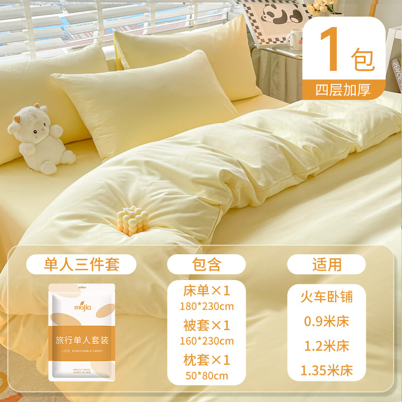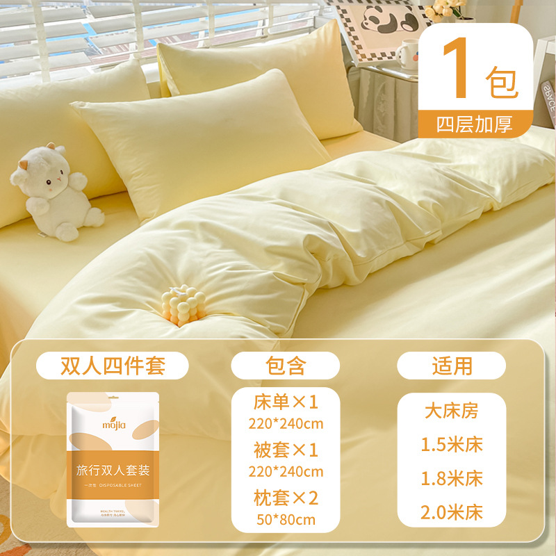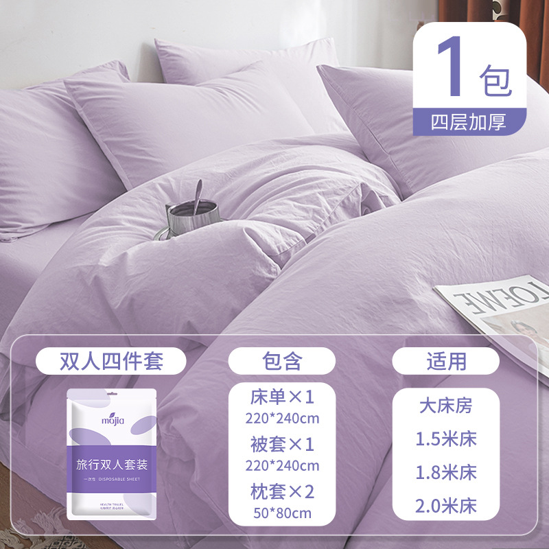 Одноразовые простыни одеяла наволочки были в ловушке в гостиничном наборе из четырех частей.