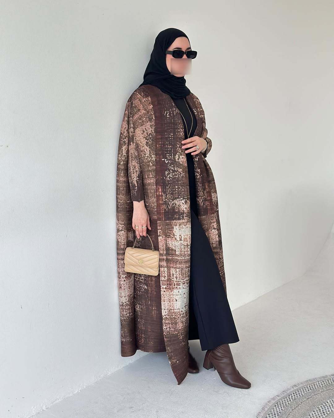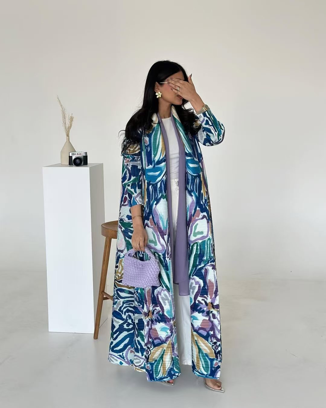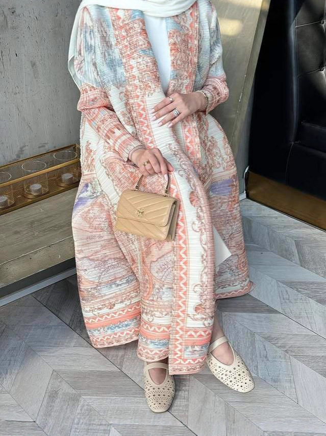 Плиссированный кардиган-тренч Miyake с принтом, абайя, длинное платье в стиле Ближнего Востока, популярная одежда для женщин из Дубая