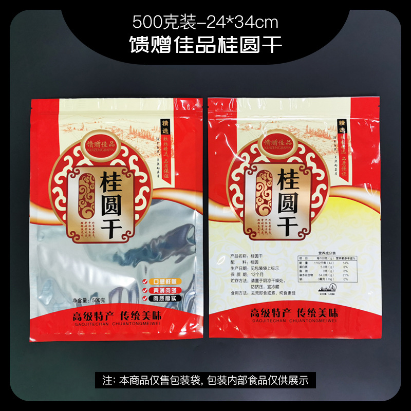 500-граммовый самозакрывающийся пакет с застежкой-молнией для сушеного лонгана, пакет с плоским дном для сушеного личи, 0.5kg упаковок пластиковых пакетов для пищевых продуктов с сушеным лонганом.