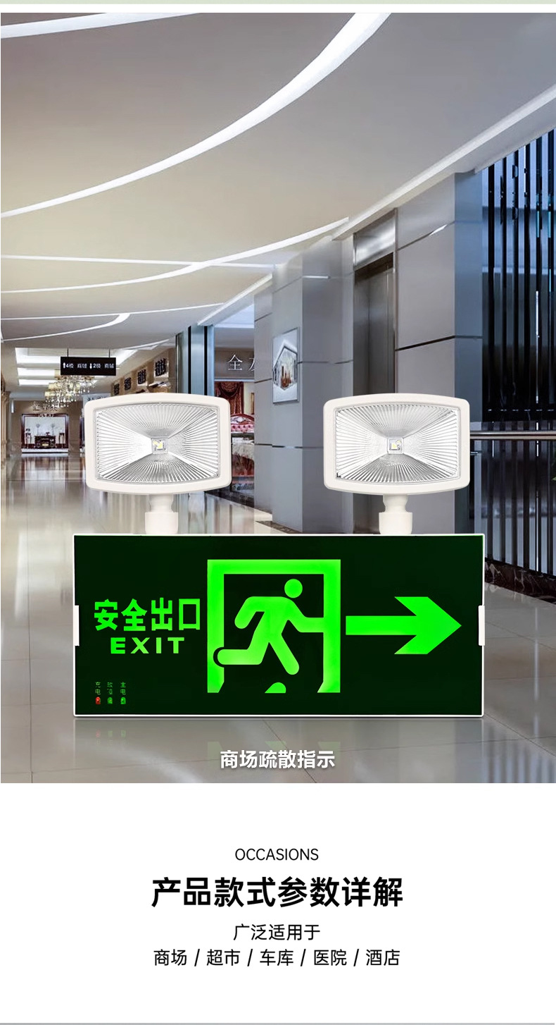 Пожарный аварийный свет Светодиодный двухголовый 2-в-1 многофункциональный аварийный свет Эвакуационный знак безопасности выхода