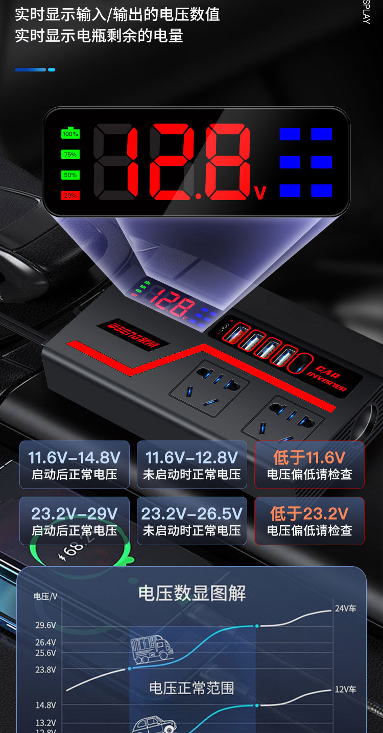 [Квадратный корпус Cool Marquee, универсальный 12v24v] цифровой дисплей + порт PD + полный протокол; [Квадратный корпус Cool Marquee, универсальный 12v24v] Двойная зарядка вспышки двигателя + цифровой дисплей + порт PD; [Крутой квадратный корпус 12 В 24 В, универсальный] Базовый несколько дисплеев/быстрая зарядка