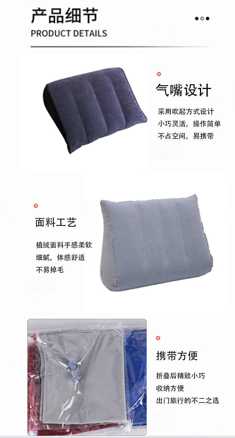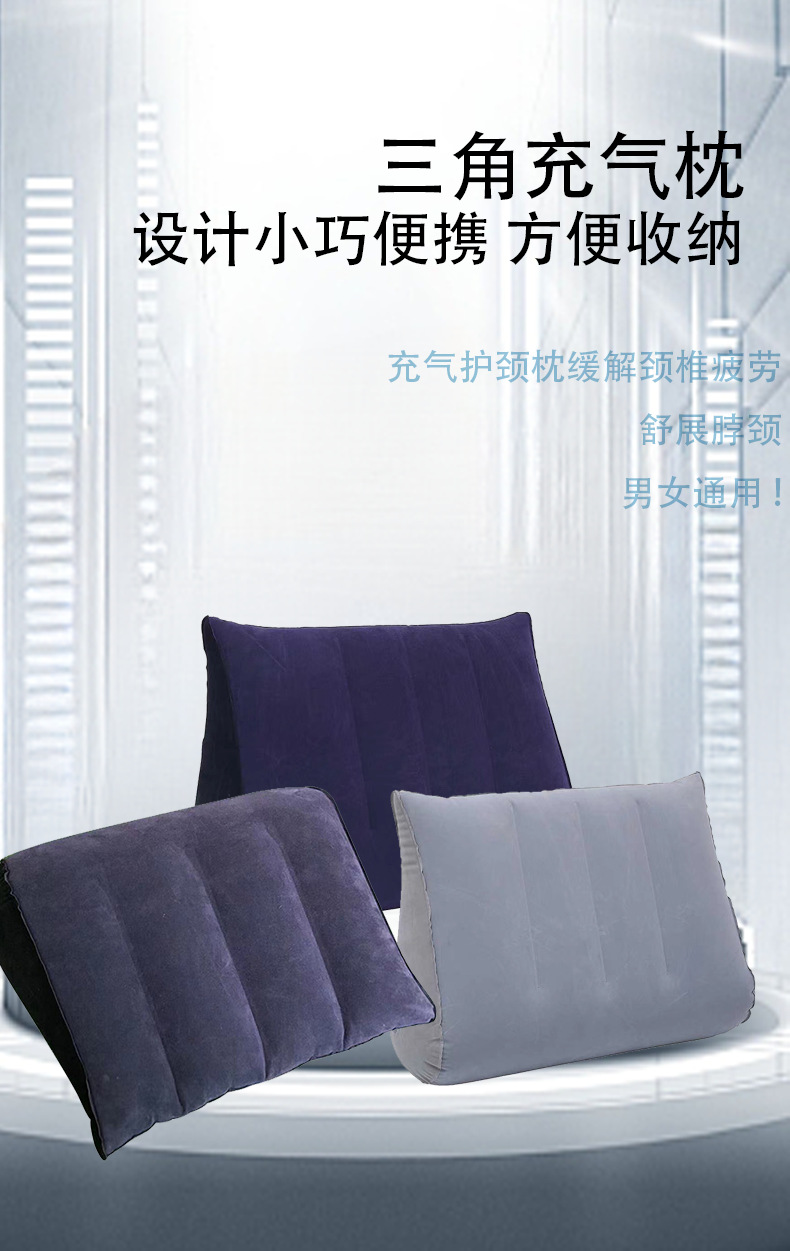 Надувная портативная подушка для шеи треугольной формы из ПВХ с флокированием, однотонная, для путешествий и самолетов, прямые поставки с завода.
