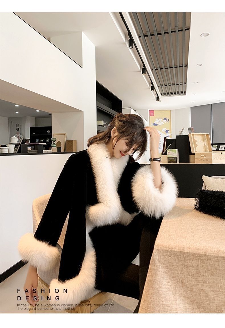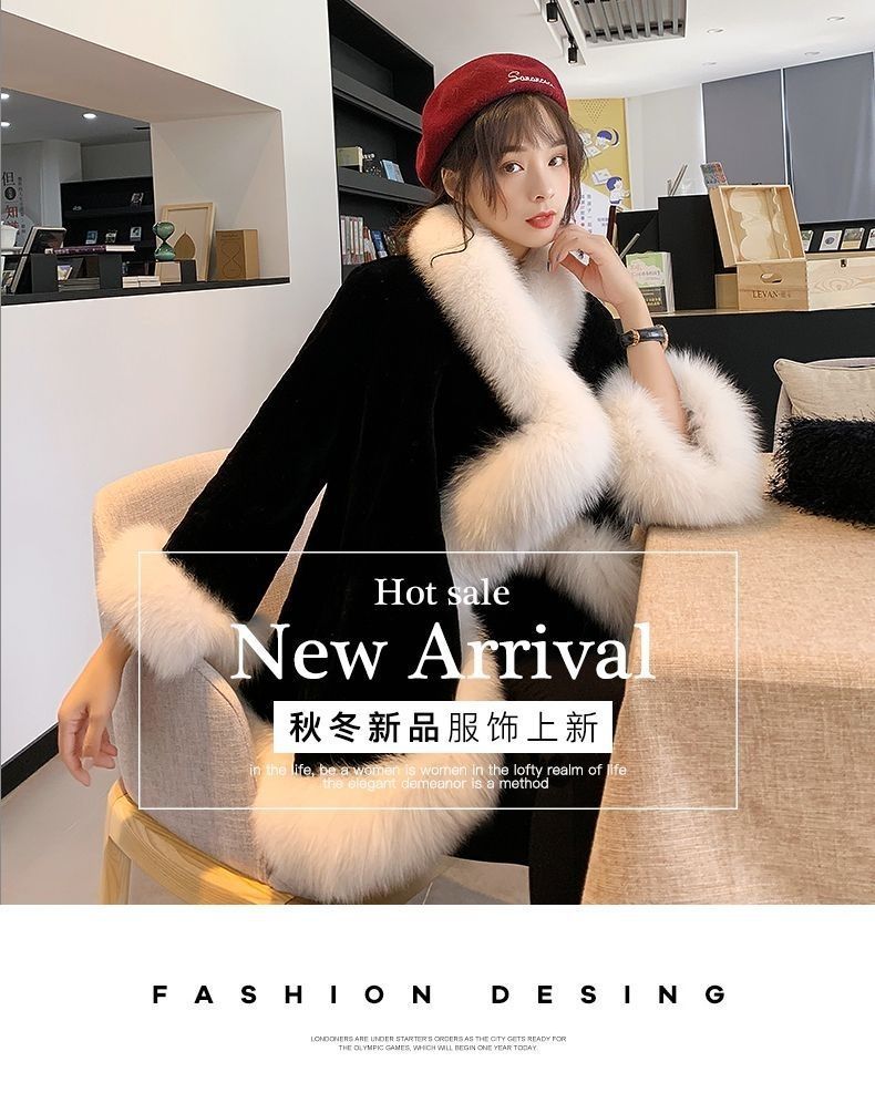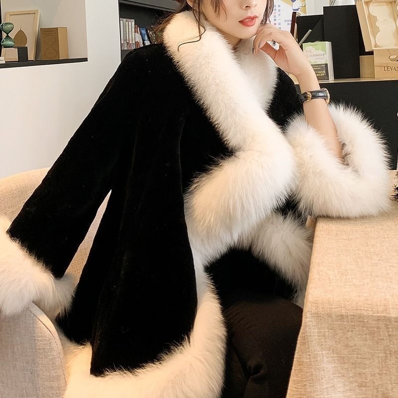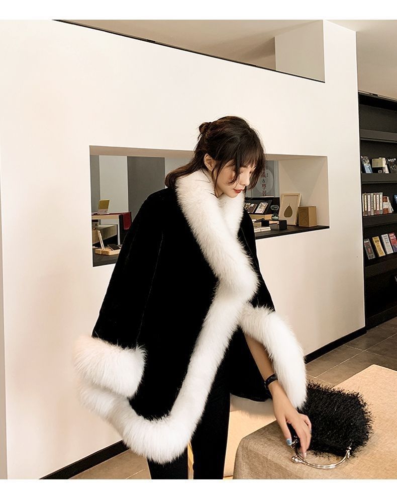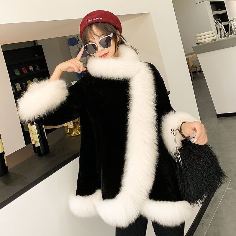 Осенняя и зимняя новая меховая куртка женская норковая шерсть утолщена теплая шерсть шаль плащ тонкий длинный