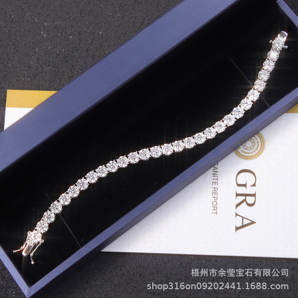 Популярный браслет-цепочка в стиле хип-хоп из стерлингового серебра с муассанитами ручной закрепки 2-6,5 мм, браслет в стиле легкой роскоши и нишевого дизайна