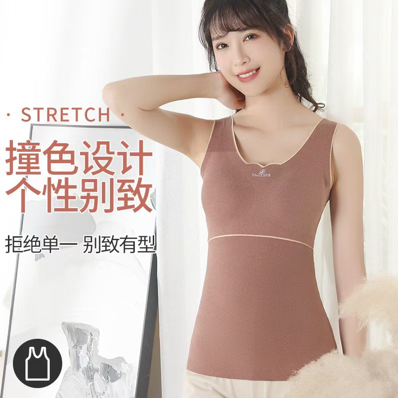 HeattechIntimates, осенняя одежда, женская рубашка DeRong с утолщенной нижней частью на флисовой подкладке, зимний верхний жилет с низким воротником и накладкой для груди