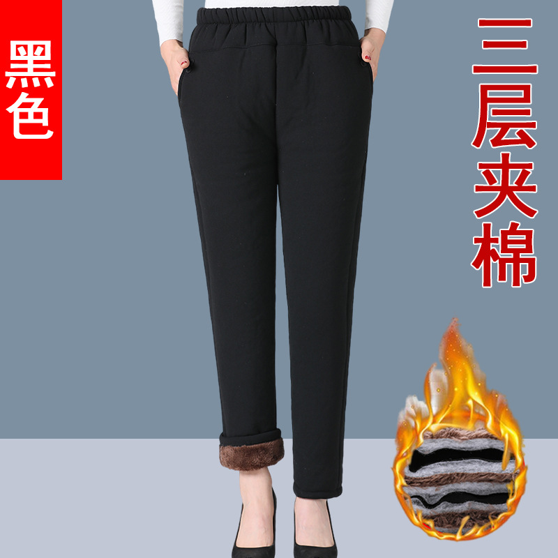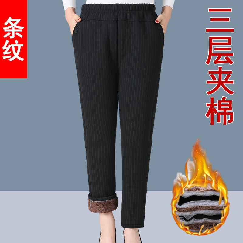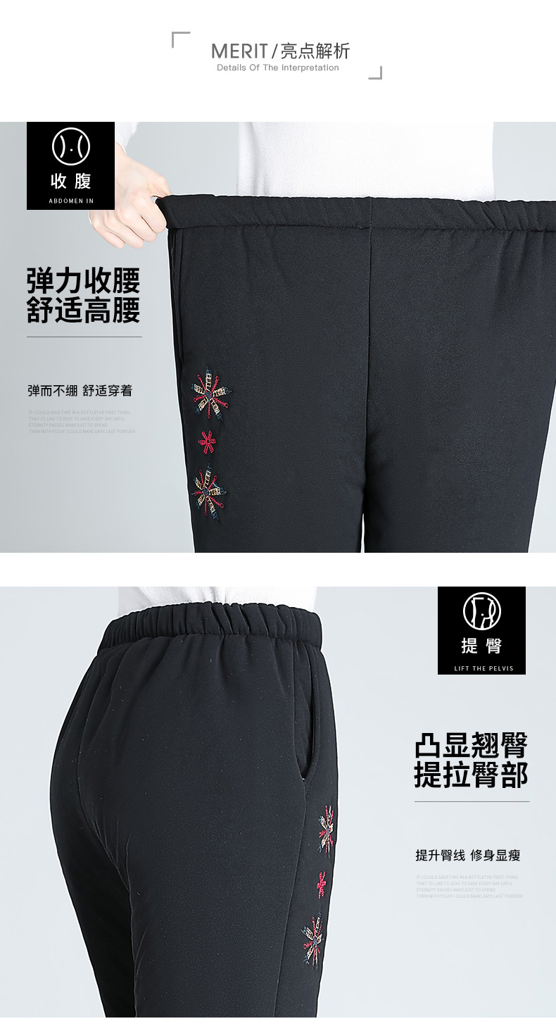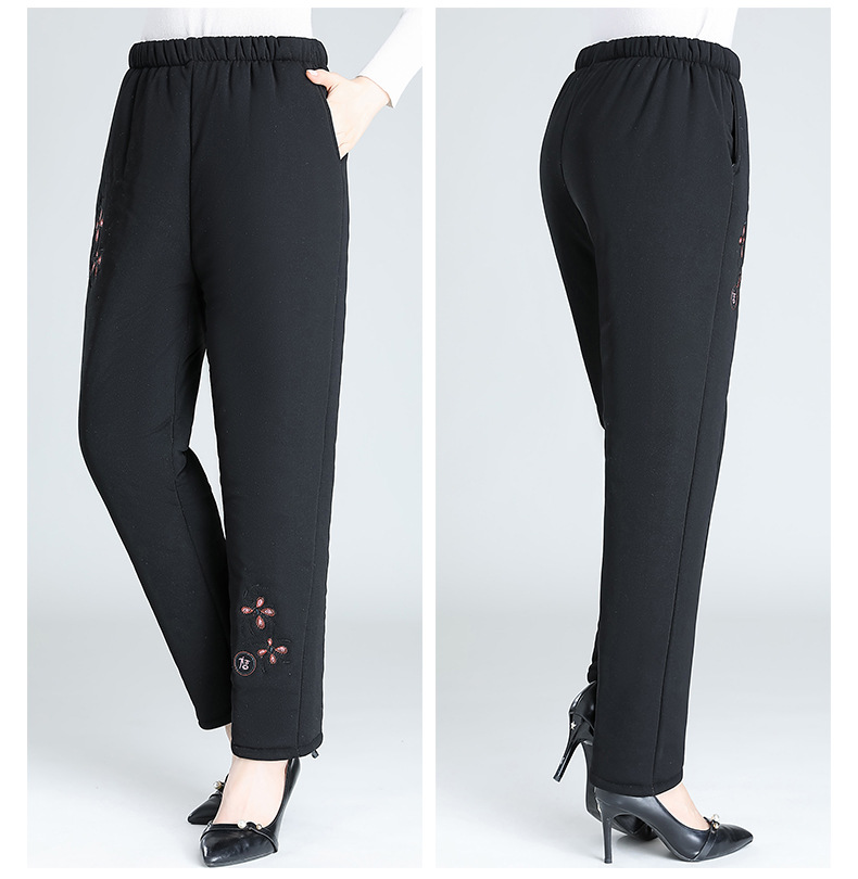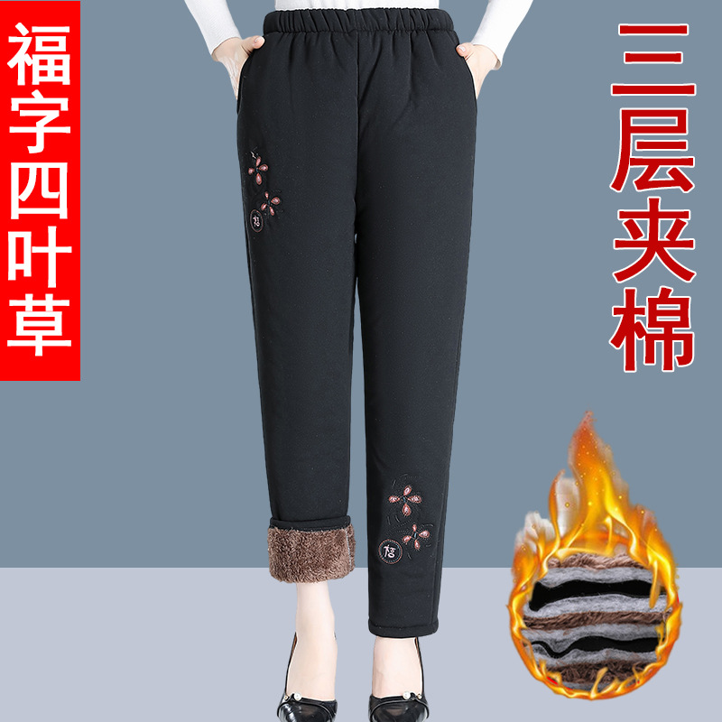 Зимние хлопковые брюки для женщин среднего и старшего возраста, утепленные стеганые брюки для бабушки с овечьим флисом, брюки для мамы, вышитые длинные брюки для пожилых женщин.