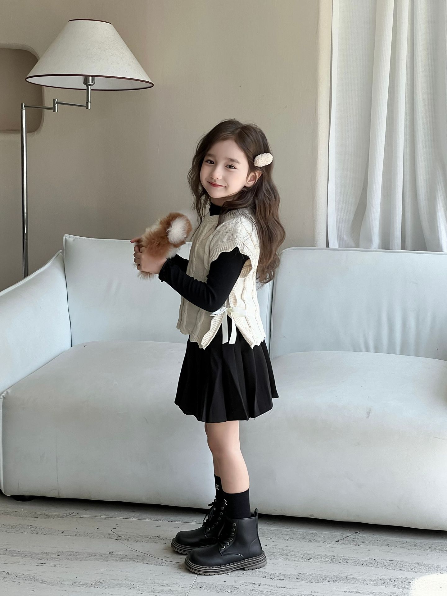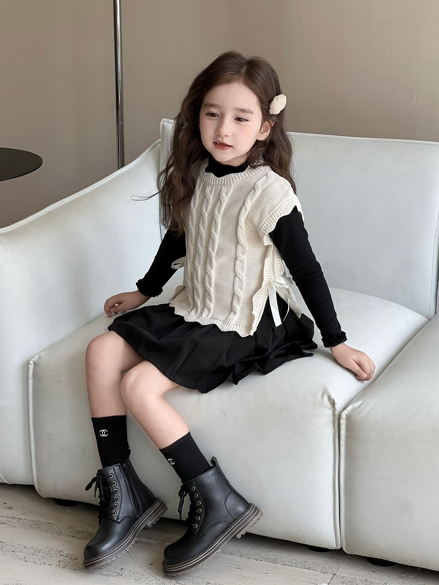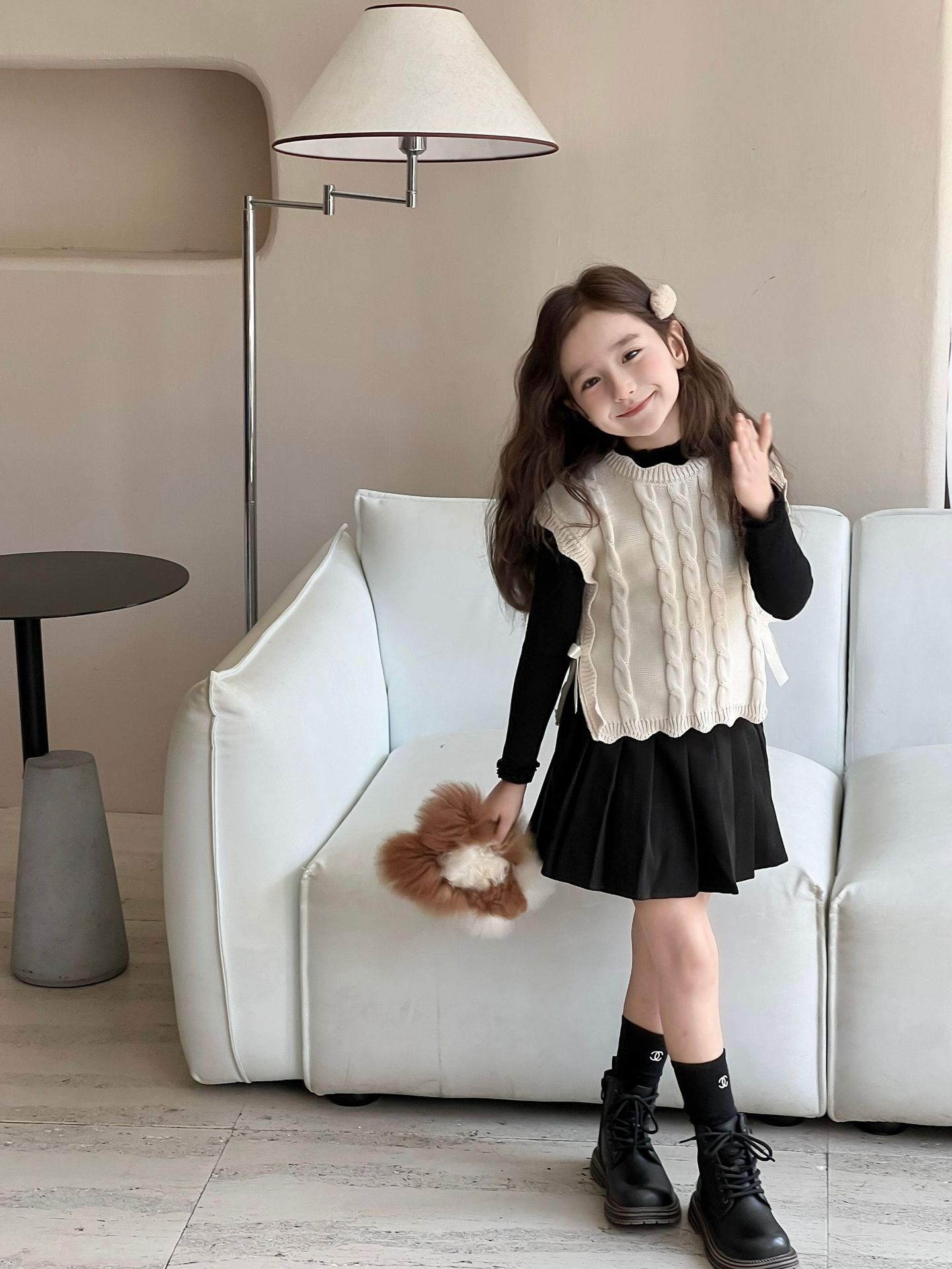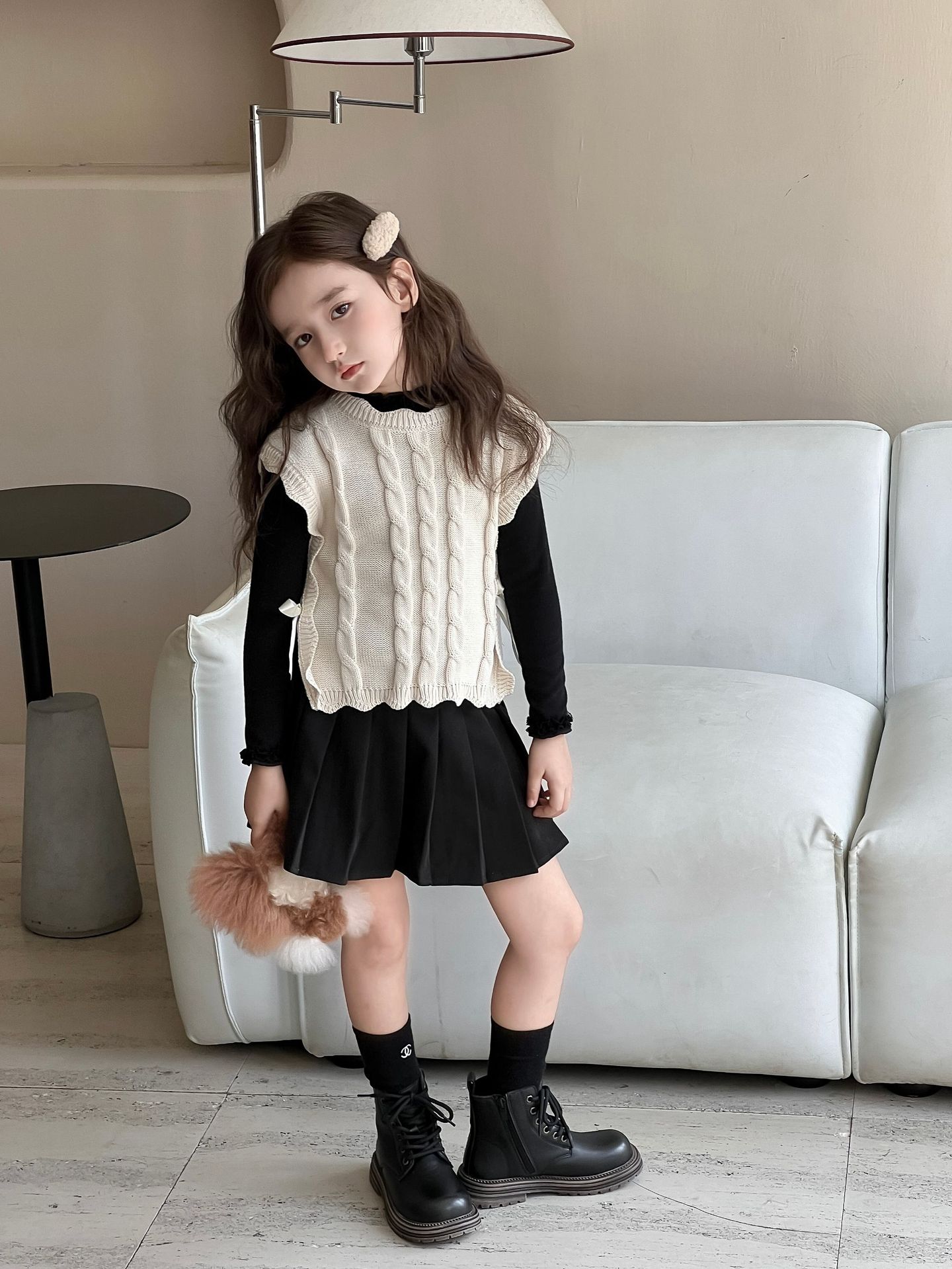 Детский вязаный жилет для девочек, весна-осень 2026, новый, в милом лесном стиле, с кружевом, без рукавов, модный трикотажный топ