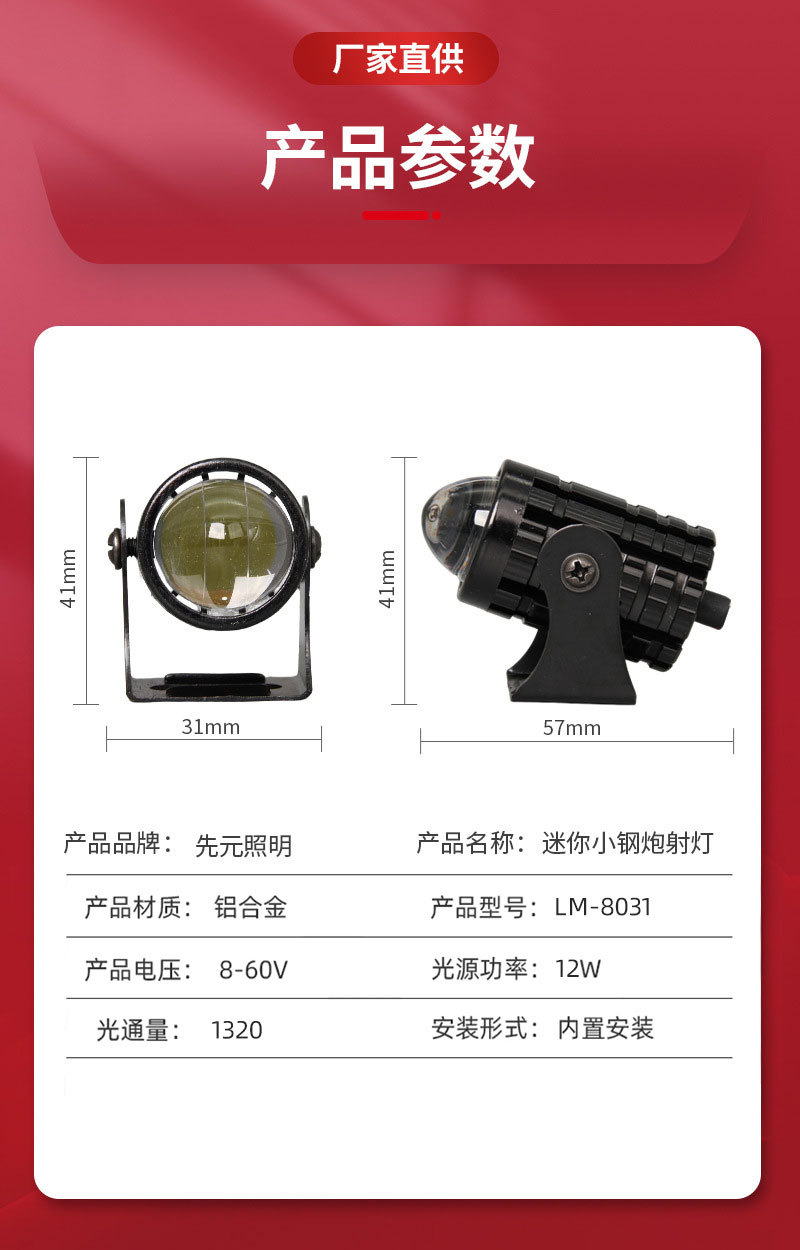 Трансграничные светодиодные огни мотоцикла мини-маленькие стальные пушечные прожекторы ближнего и дальнего света вспомогательные фары наружные электрические фары