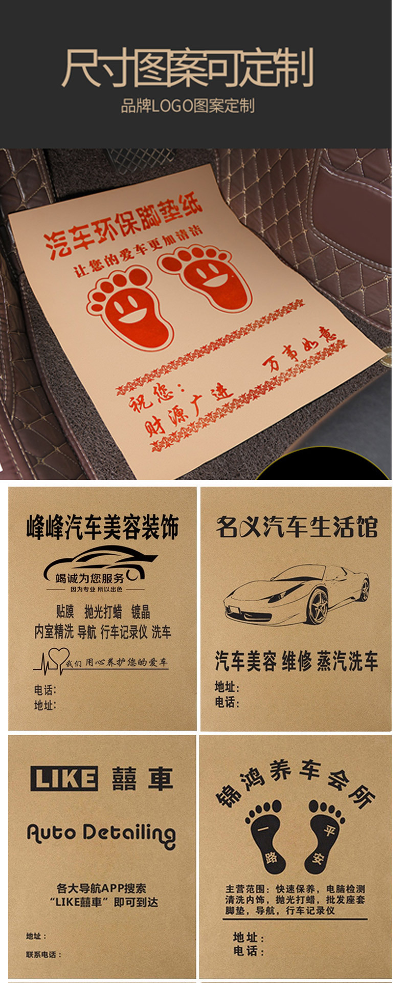 Автомобильный логотип Автомобильный одноразовый бумажный коврик Автомойка 4s магазин водонепроницаемый воловья нога бумага педали бумага для ног 100 листов
