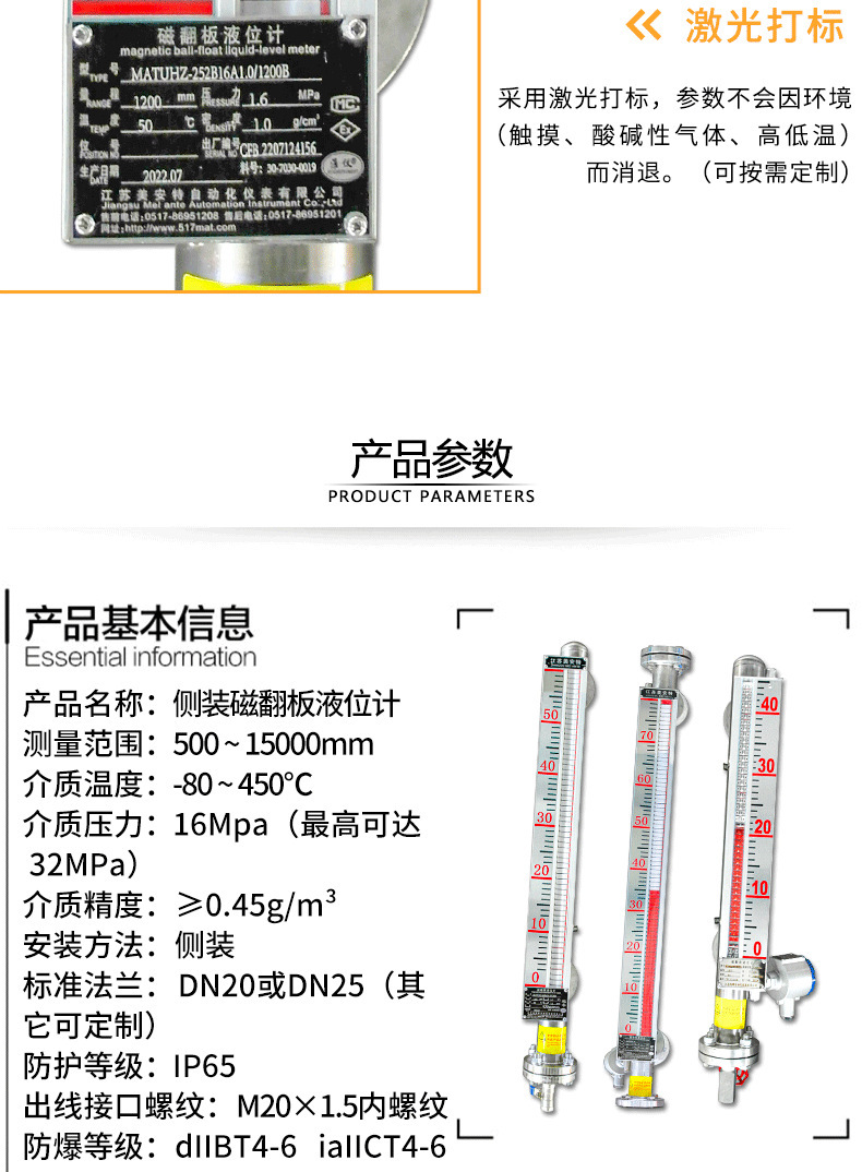 Профессиональный магнитный фланцевый уровнемер Huaiyi, магнитный фланцевый уровнемер для резервуаров, производитель магнитных фланцевых уровнемеров