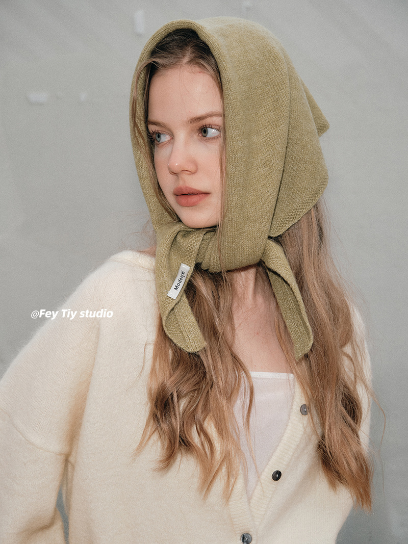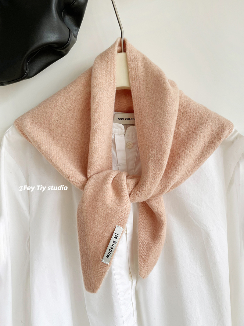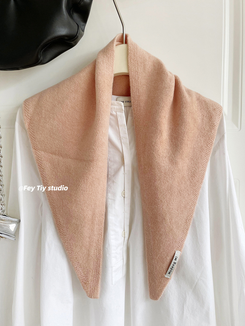Корейский элитный шарф-треугольник из смесовой шерсти, вязаная шаль в корейском стиле для женщин, теплый треугольный шарф, небольшой палантин.