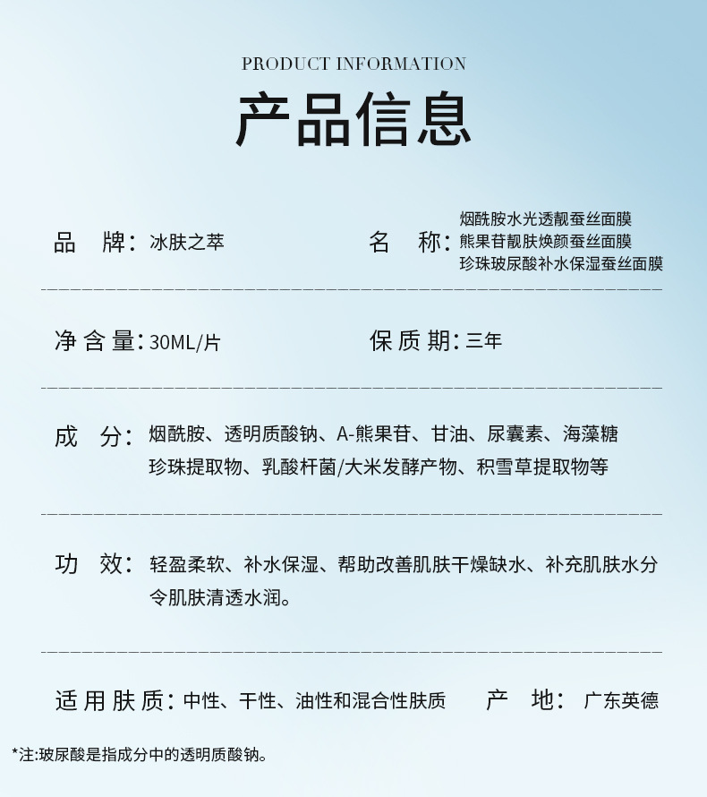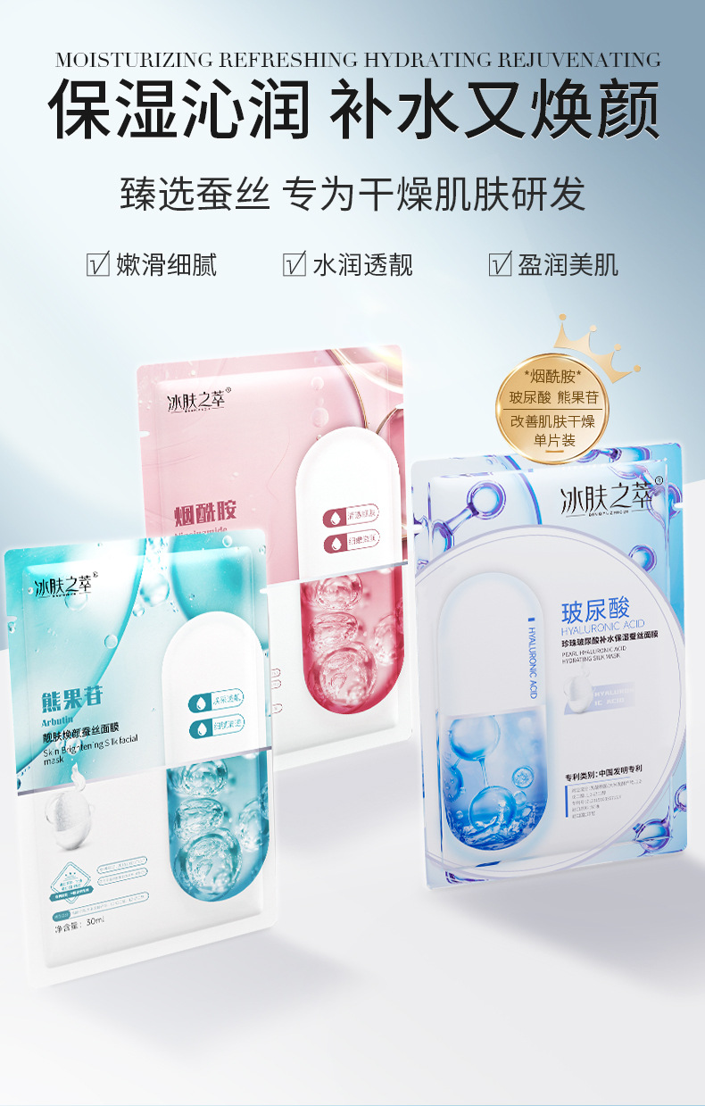 Эссенция для кожи Ice Skin с арбутином: осветляющая и омолаживающая шелковая маска (в упаковке); Экстракт ледяной кожи, ниацинамид, увлажняющая и полупрозрачная шелковая маска (упаковка листов); Маска для лица с гиалуроновой кислотой и жемчужным эффектом Ice Skin, увлажняющая и питательная, шелковая (в упаковке).; Омолаживающая и увлажняющая маска Shitou Natto (листовая); Увлажняющая и омолаживающая маска Resurrection Grass (листовая); Освежающая и гладкая маска для лица Shitu Green Tea (листовая); Омолаживающая маска Shi Tiao Yellow Water Lily Stay Up Late (листовая); Маска-порошок с ледяной сушкой и гиалуроновой кислотой [лист]; Увлажняющая лиофилизированная маска с ниацинамидом [листовая упаковка]; Лист маски для лица с огурцом CiSu; Увлажняющая маска с гиалуроновой кислотой [листовой пакет]; Маска с ретинолом Shitou (листовая); Увлажняющая и увлажняющая маска с медом Boquanyun (листовая); Увлажняющая маска Boquanyun Olive (листовая); Свежая и увлажняющая маска для лица Boquanyun Red Pomegranate (листовая); Увлажняющая и уплотняющая маска Boquanyun Cucumber (листовая); Увлажняющая маска Boquanyun Blueberry Beauty (листовая); Увлажняющая косметическая маска Boquanyun Aloe Vera (листовая)