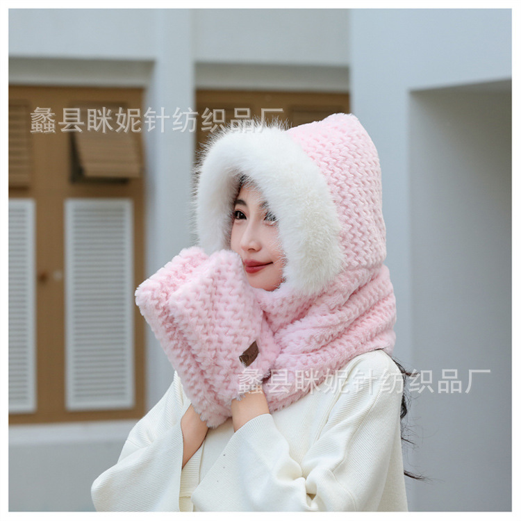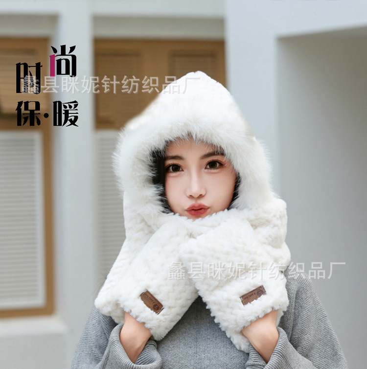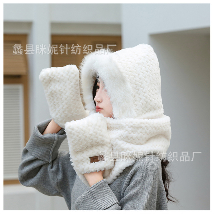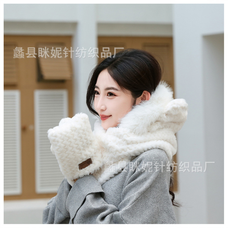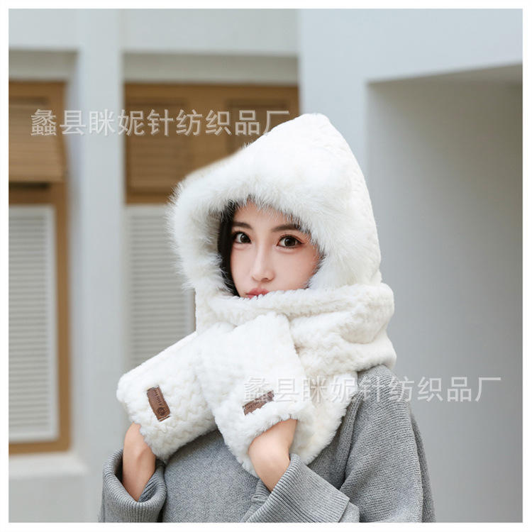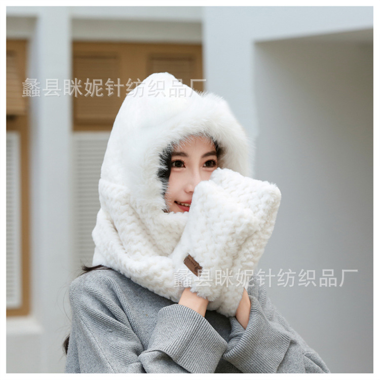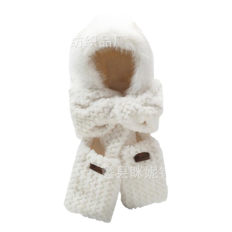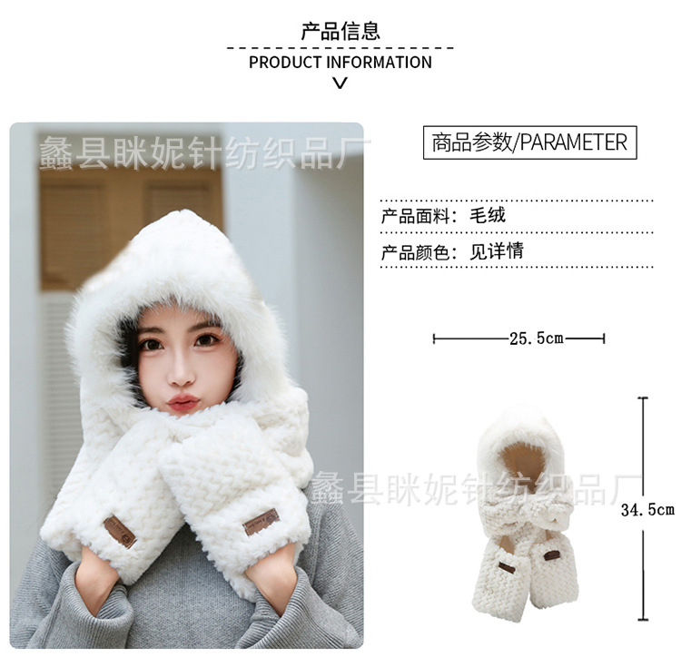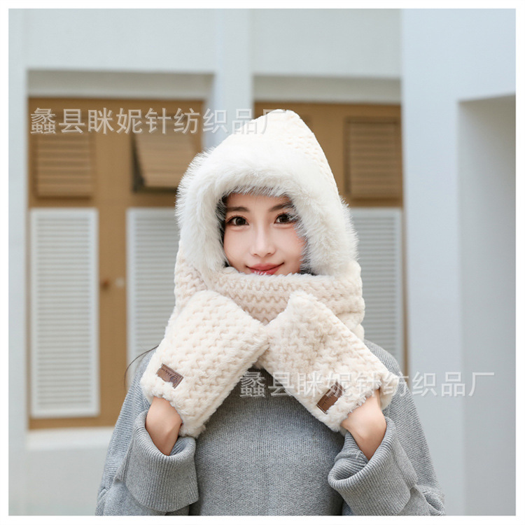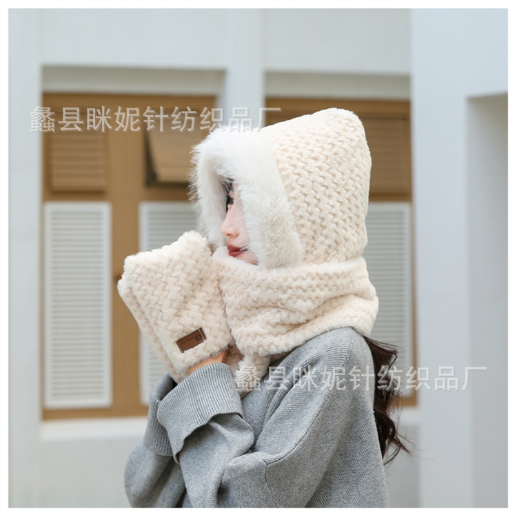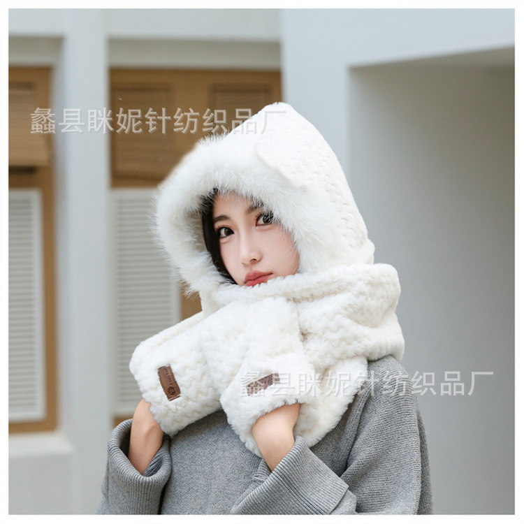Зимняя толстая вязаная шапка теплая шапка с узором шапка перчатки из трех частей мультфильм милая женская плюшевая шапка
