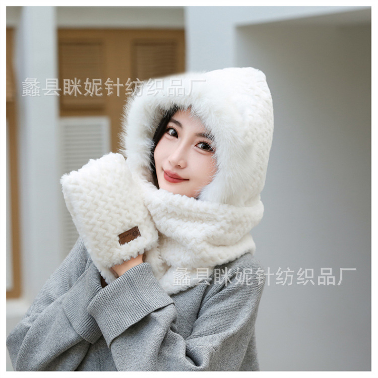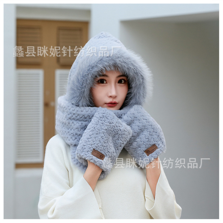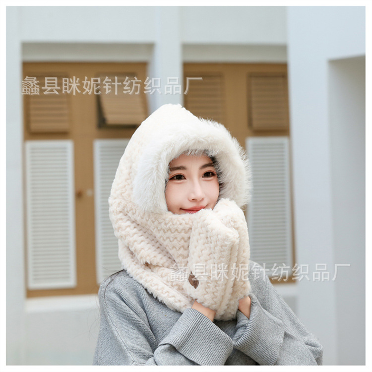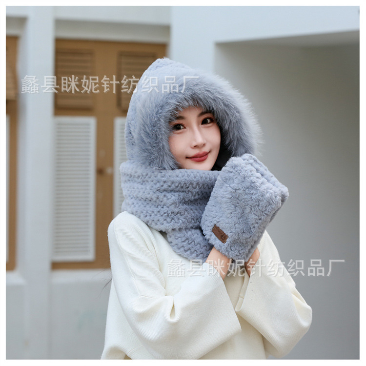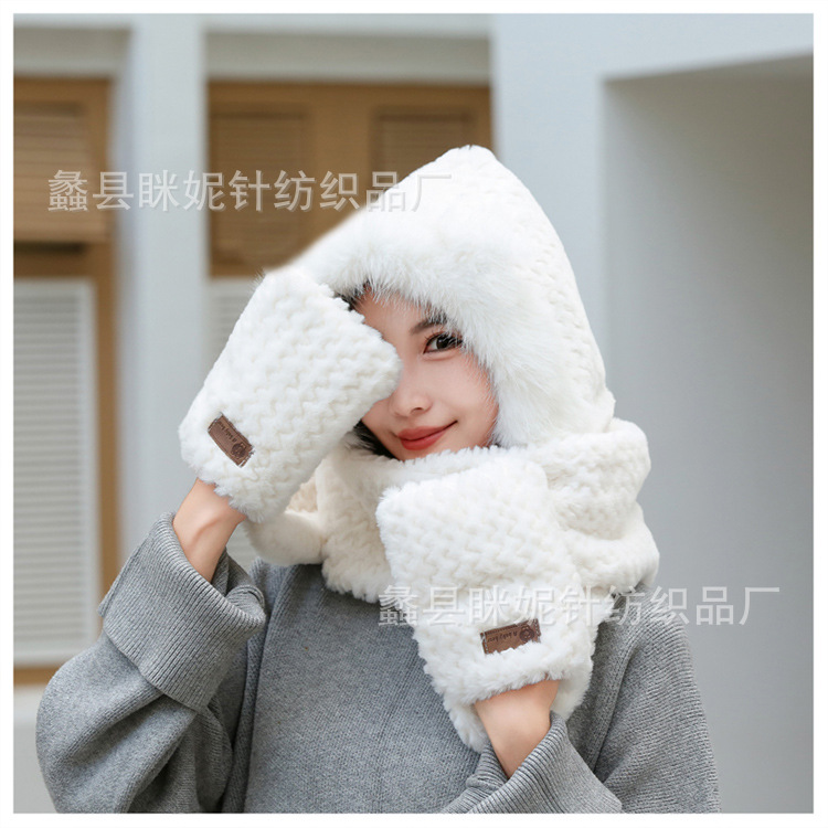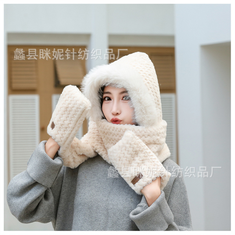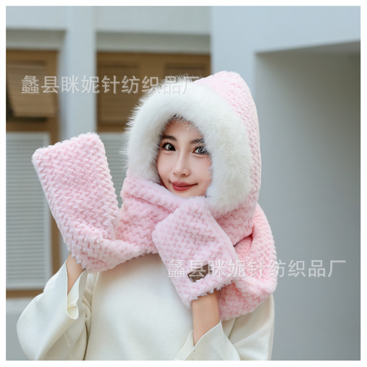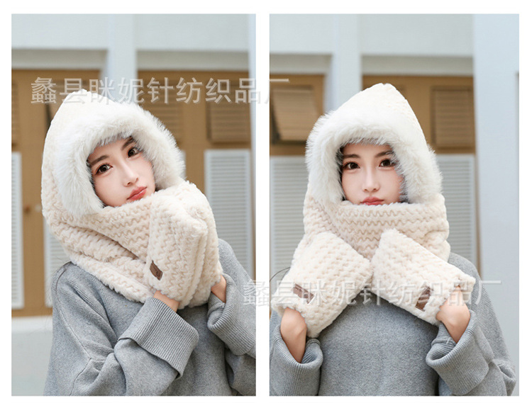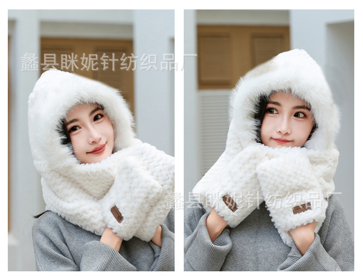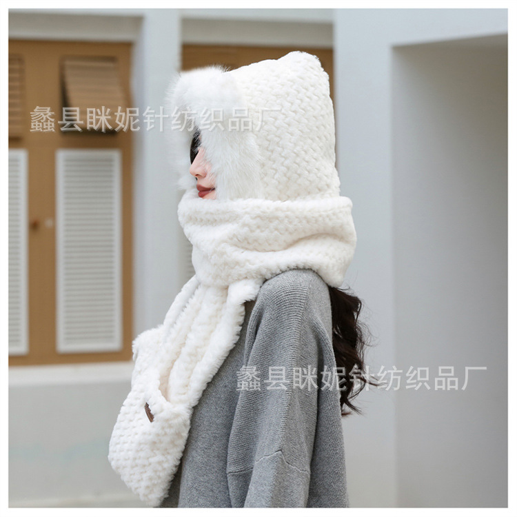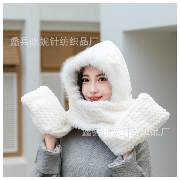 Зимняя толстая вязаная шапка теплая шапка с узором шапка перчатки из трех частей мультфильм милая женская плюшевая шапка