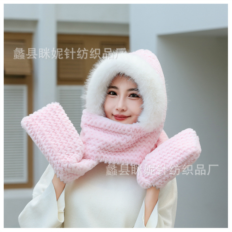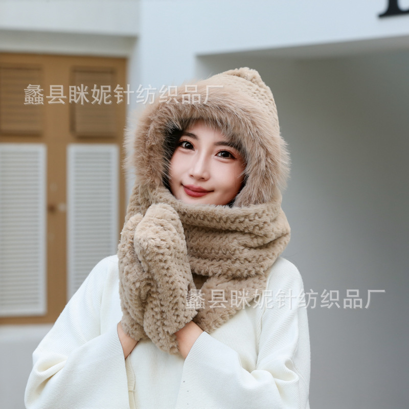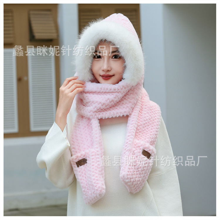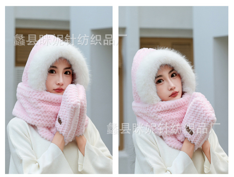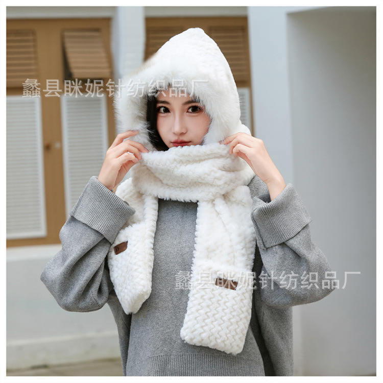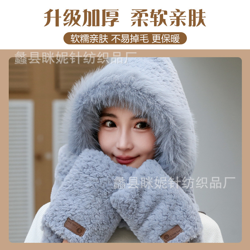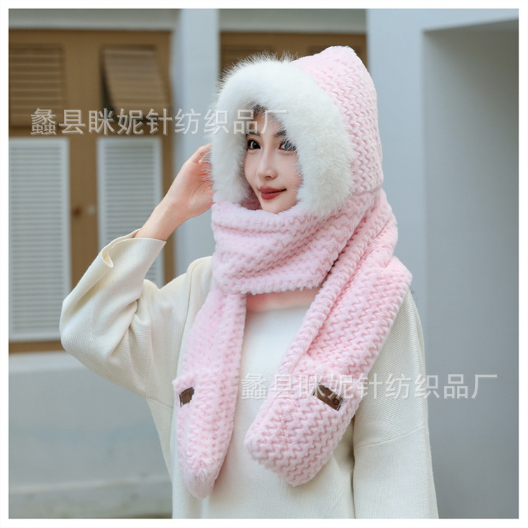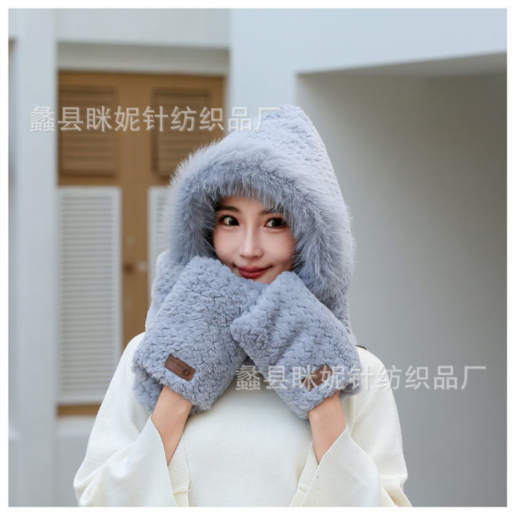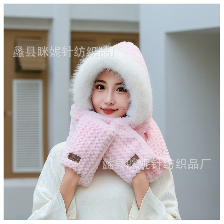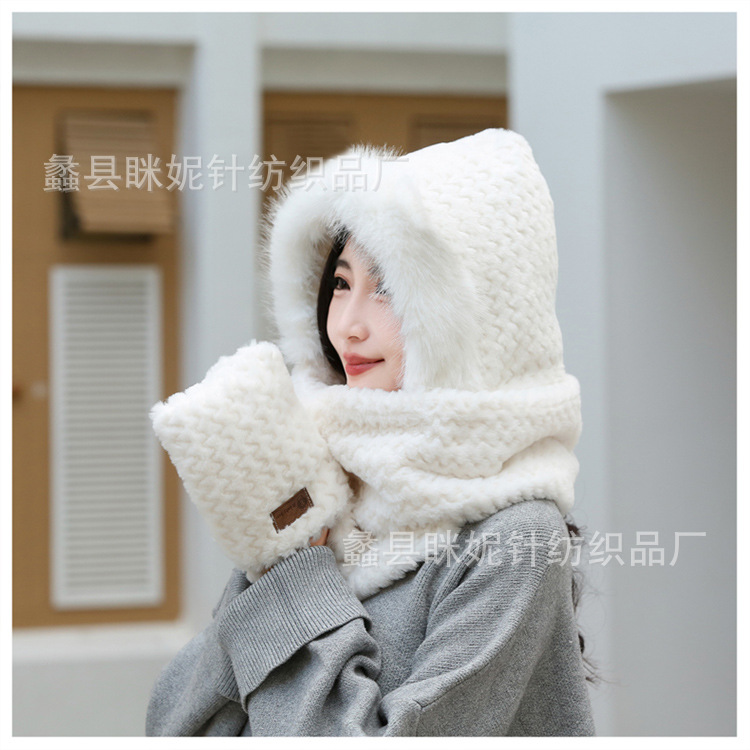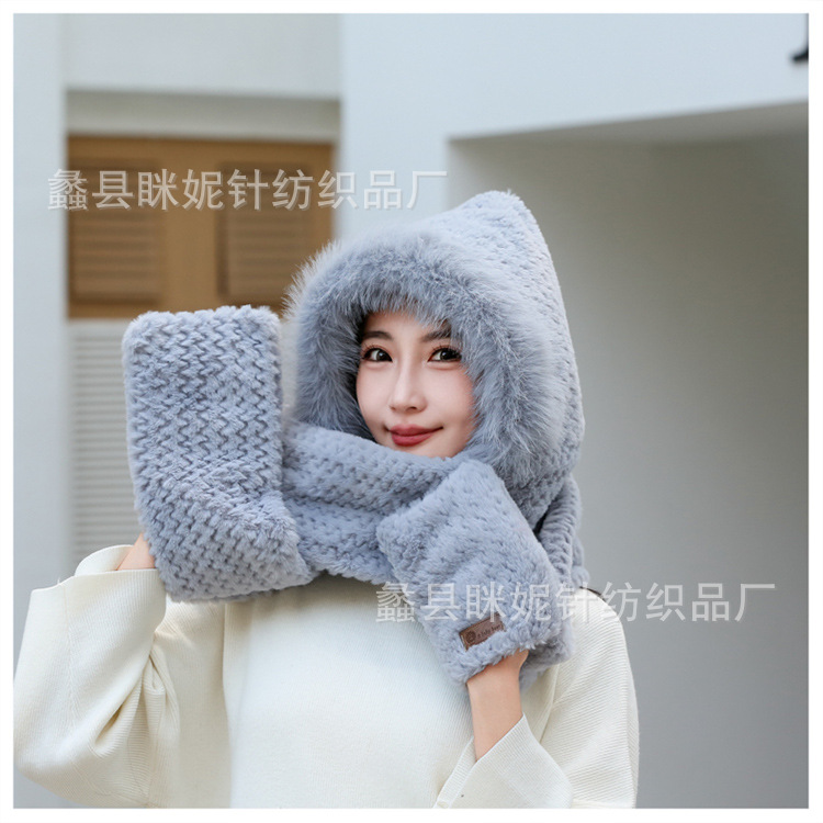 Зимняя толстая вязаная шапка теплая шапка с узором шапка перчатки из трех частей мультфильм милая женская плюшевая шапка