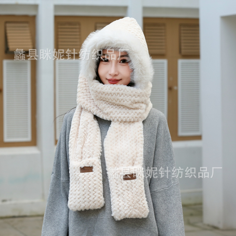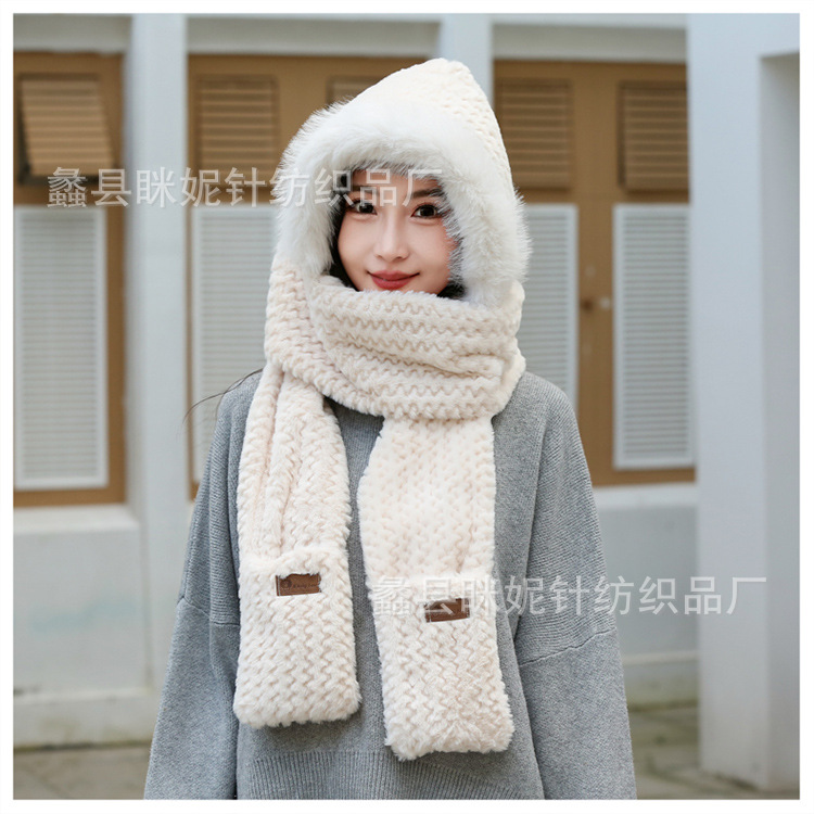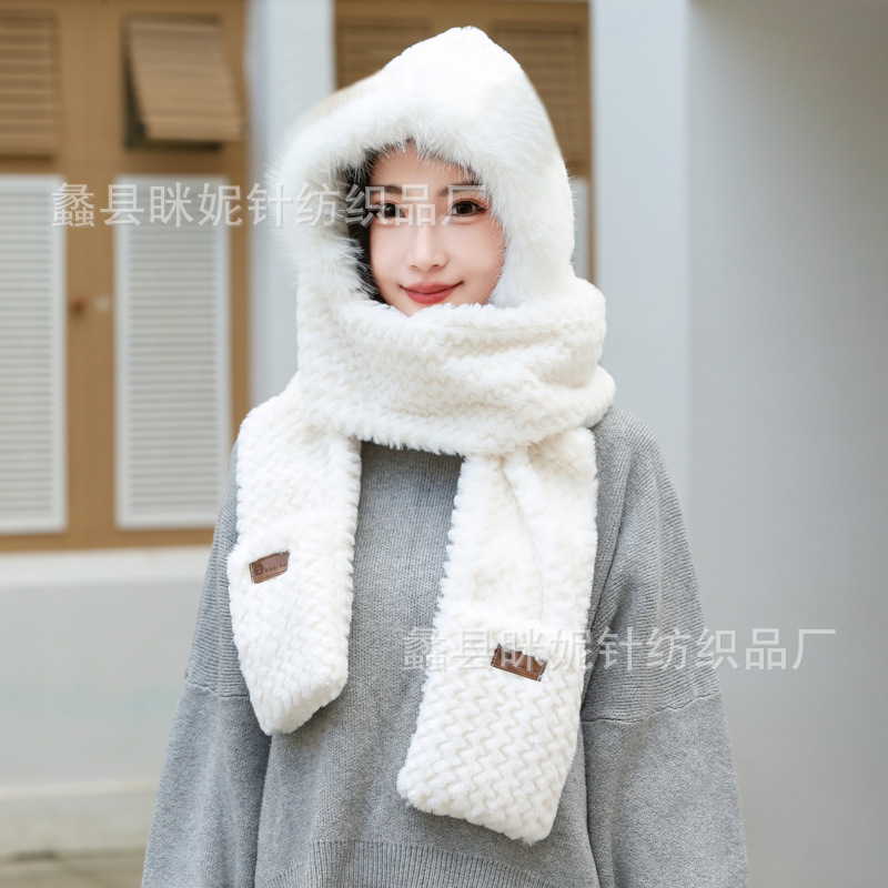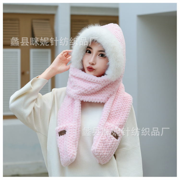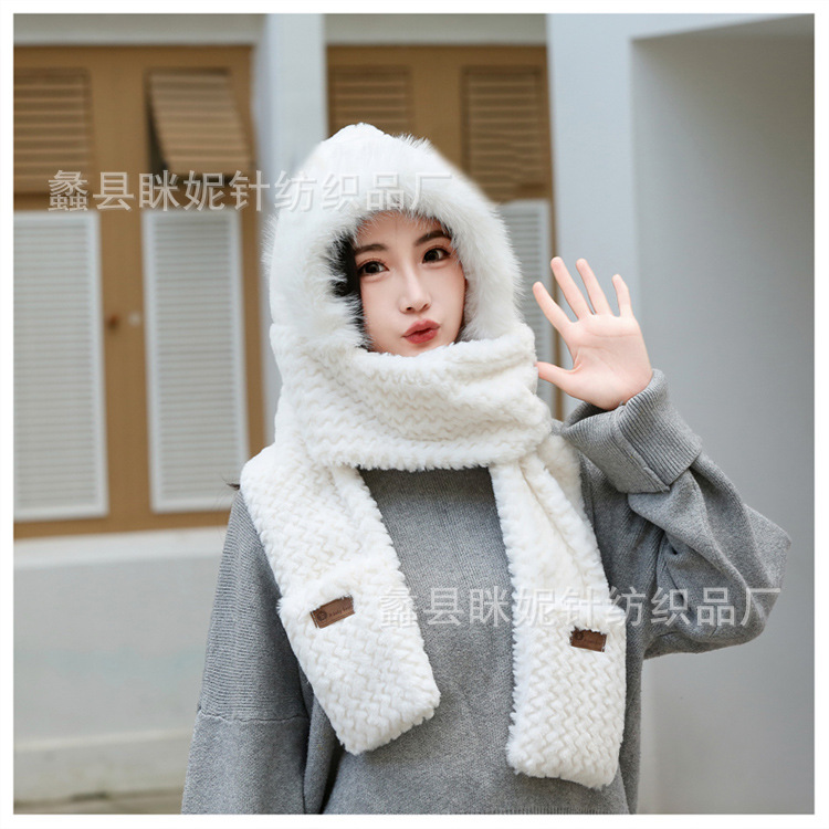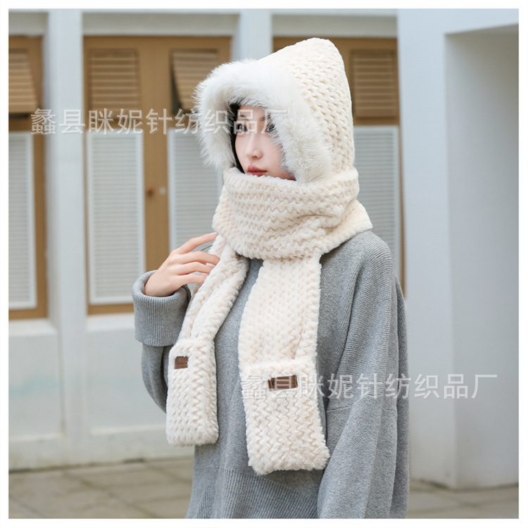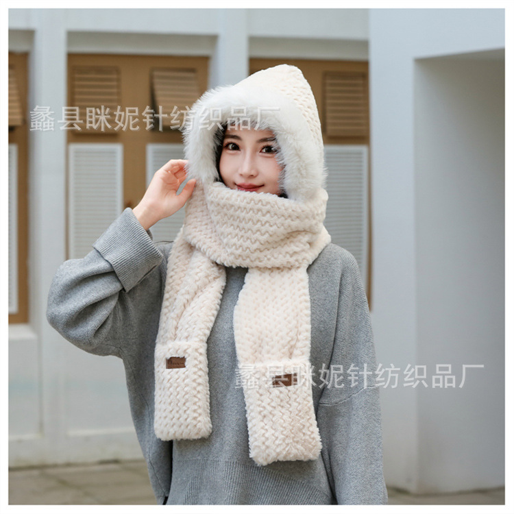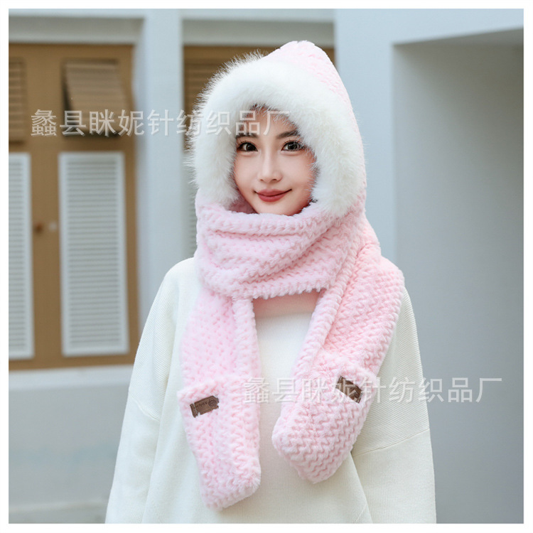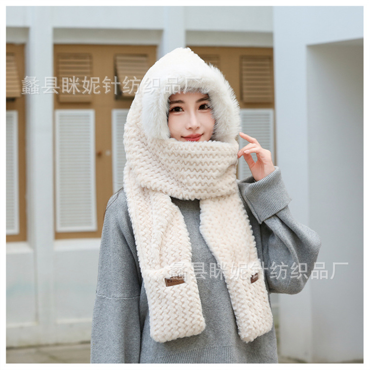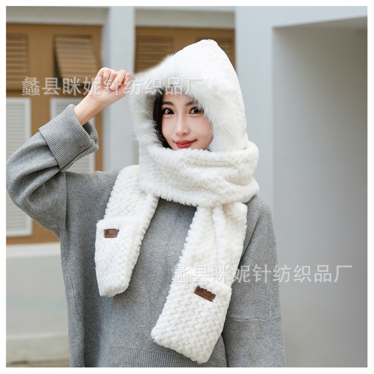 Зимняя толстая вязаная шапка теплая шапка с узором шапка перчатки из трех частей мультфильм милая женская плюшевая шапка
