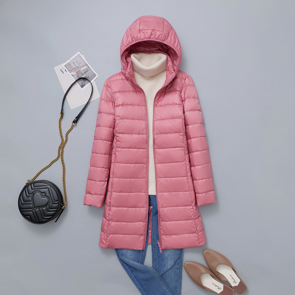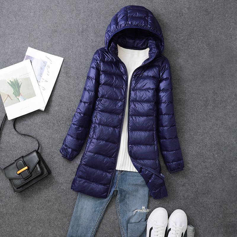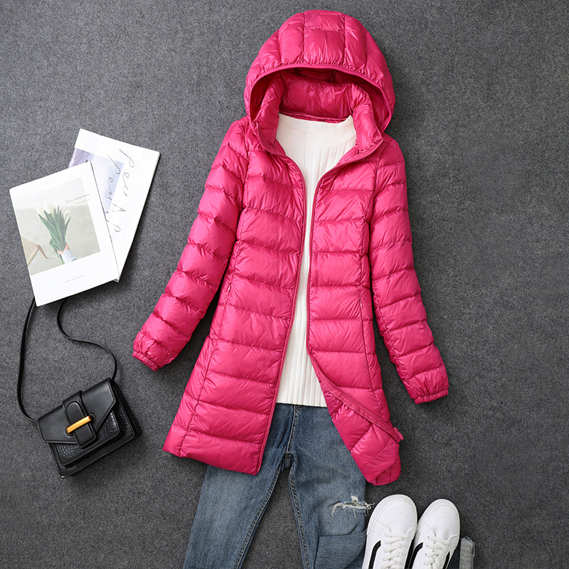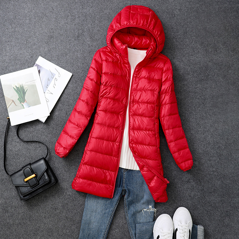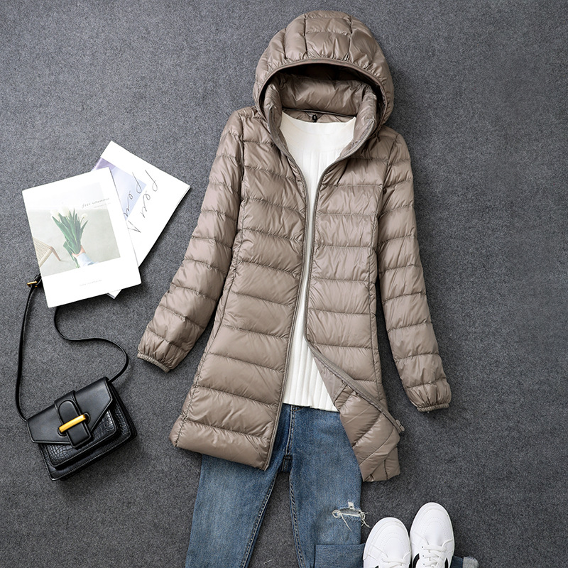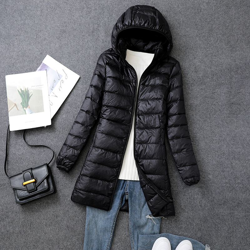 Осенний и зимний новый тонкий пуховик женский средний и длинный плюс большой размер толстый мм свободный тонкий с капюшоном куртка через границу
