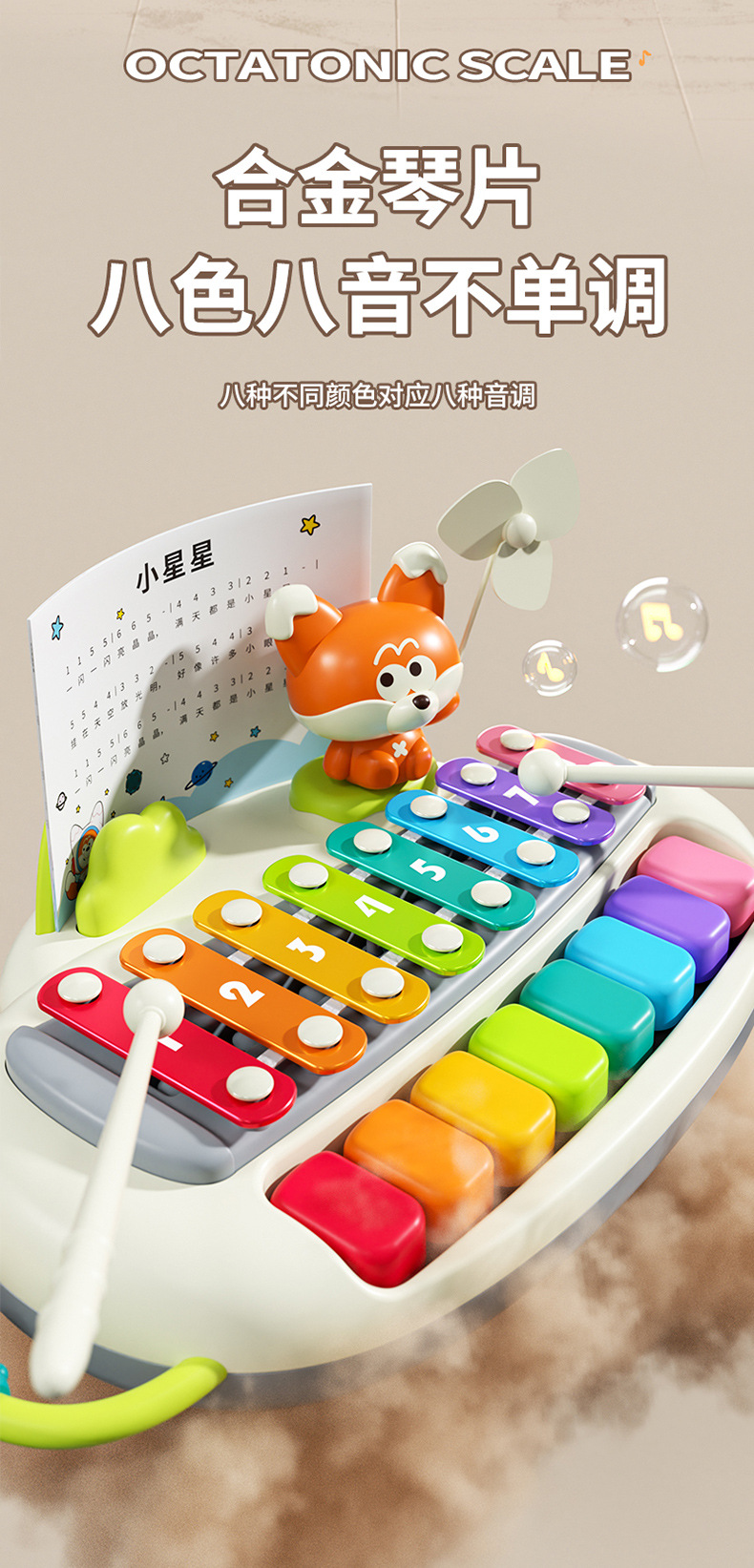 Oyu Fox восьмиугольный пианино пианино детские игрушки детское головоломка ксилофон детское ручное пианино два в одном музыкальный аппарат