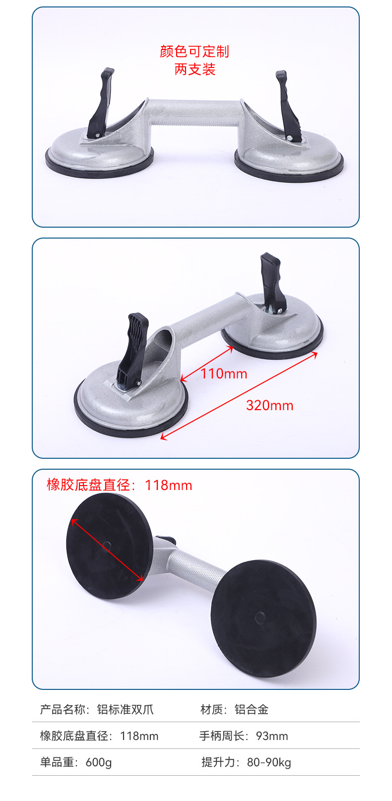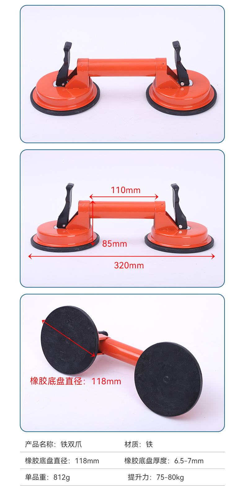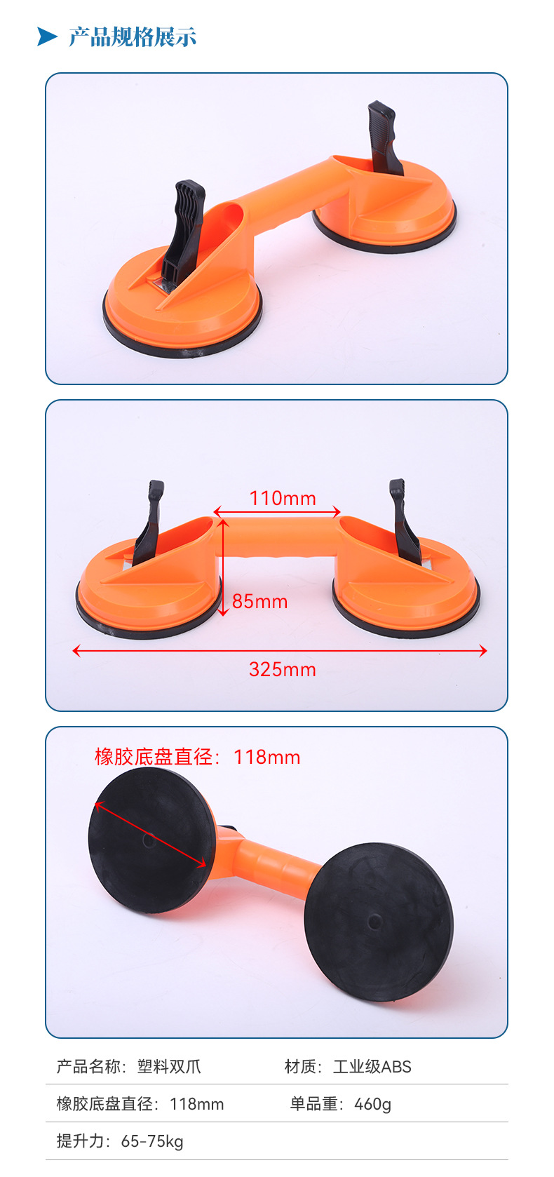 Усиленный подъемник для плитки и камня с двойным захватом и присоской, инструмент для работы с напольной плиткой и стеклом.